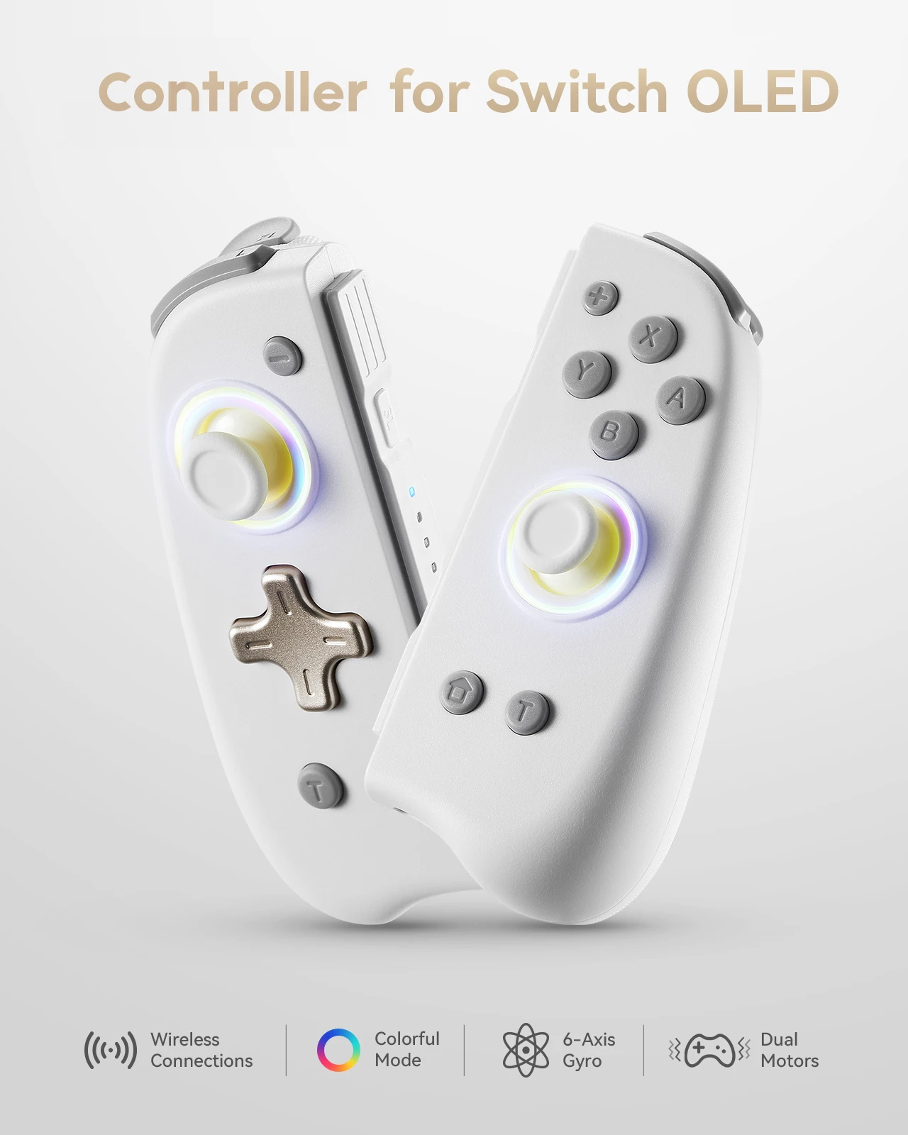 Comprar DOYOKY Classic RGB Joycon Slim Edition-Mando de mando romote blanco para Nintendo Switch/OLED con control de movimiento y ergonomía Dual Turb