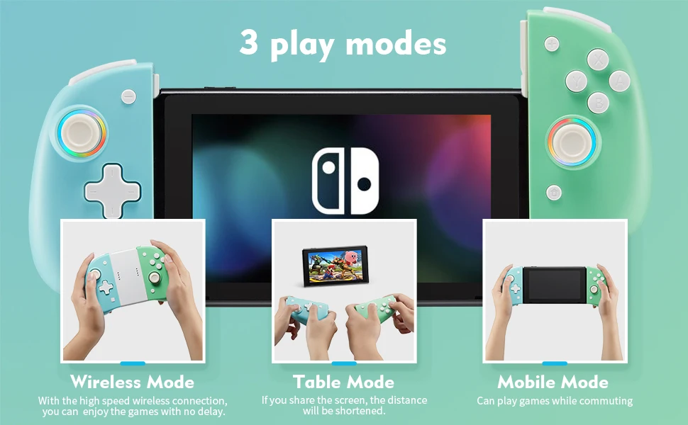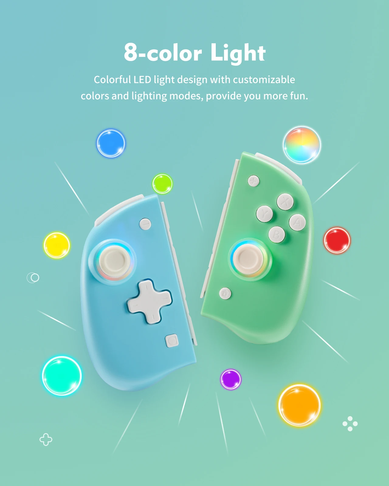 🎮[Anillo de luz LED de 8 colores y 3 modos diferentes] ¡Anillo de luz LED ajustable bien diseñado de 8 colores diferentes! Este es el controlador Joy-con más COOLEST que tiene 7 colores y luz LED de arco iris, además de 3 modos de luz diferentes: modo de un solo color, modo de cambio de color de respiración, y modo arcoíris en los controladores izquierdo y derecho.