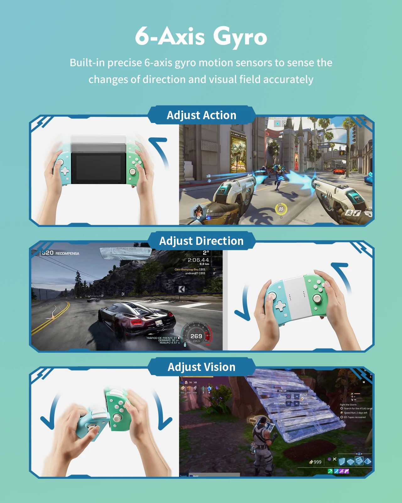 🎮[Función Turbo y controles de movimiento precisos] ¡Mejora la precisión del juego! Este interruptor Joycon puede personalizar el Turbo con cualquier botón para liberar los dedos de los jugadores y ajustar la velocidad del turbo para adaptarse a diferentes juegos. Los controladores Joypad también tienen controles de movimiento de giro de 6 ejes incorporados para iniciar/detener el movimiento rápidamente sin demora.