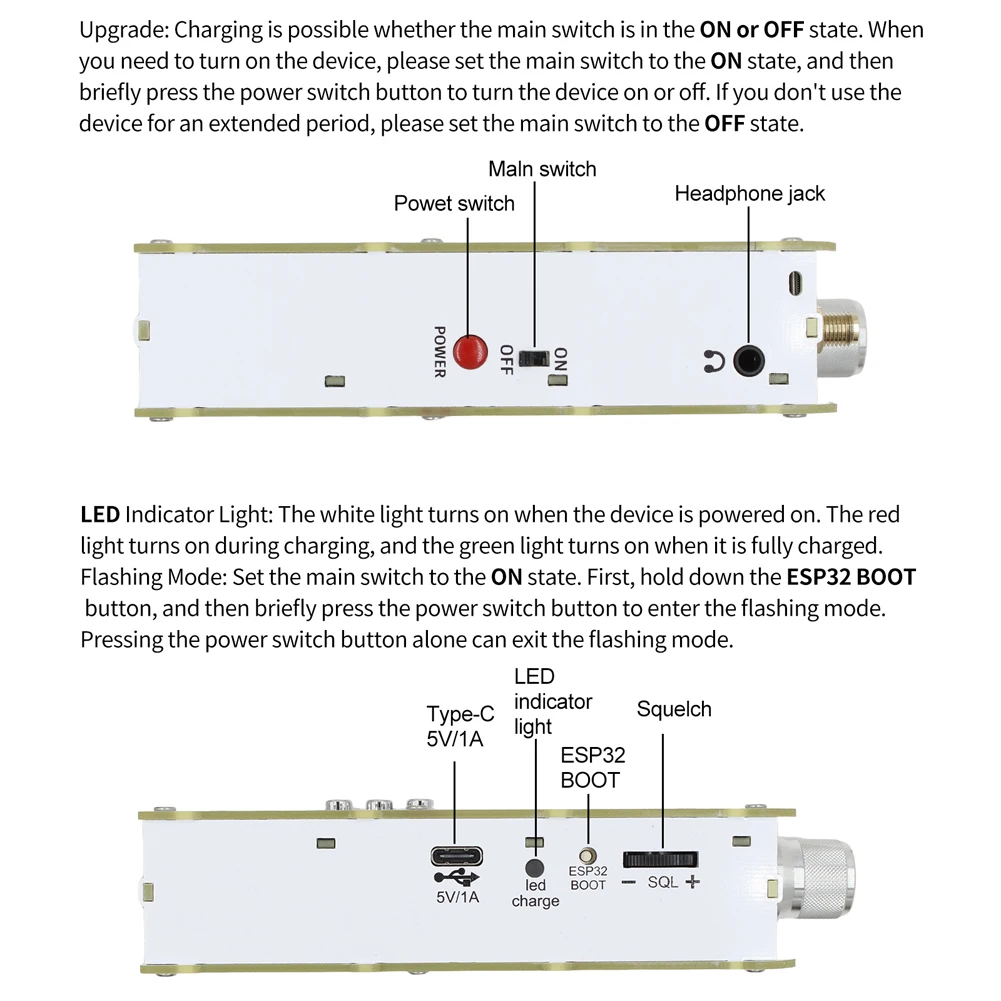 Carga del puerto TYPE-C y actualización de firmware con botón ESP32 BOOT reservado en el exterior