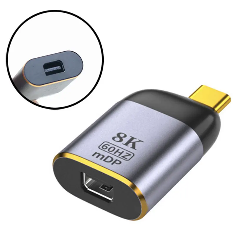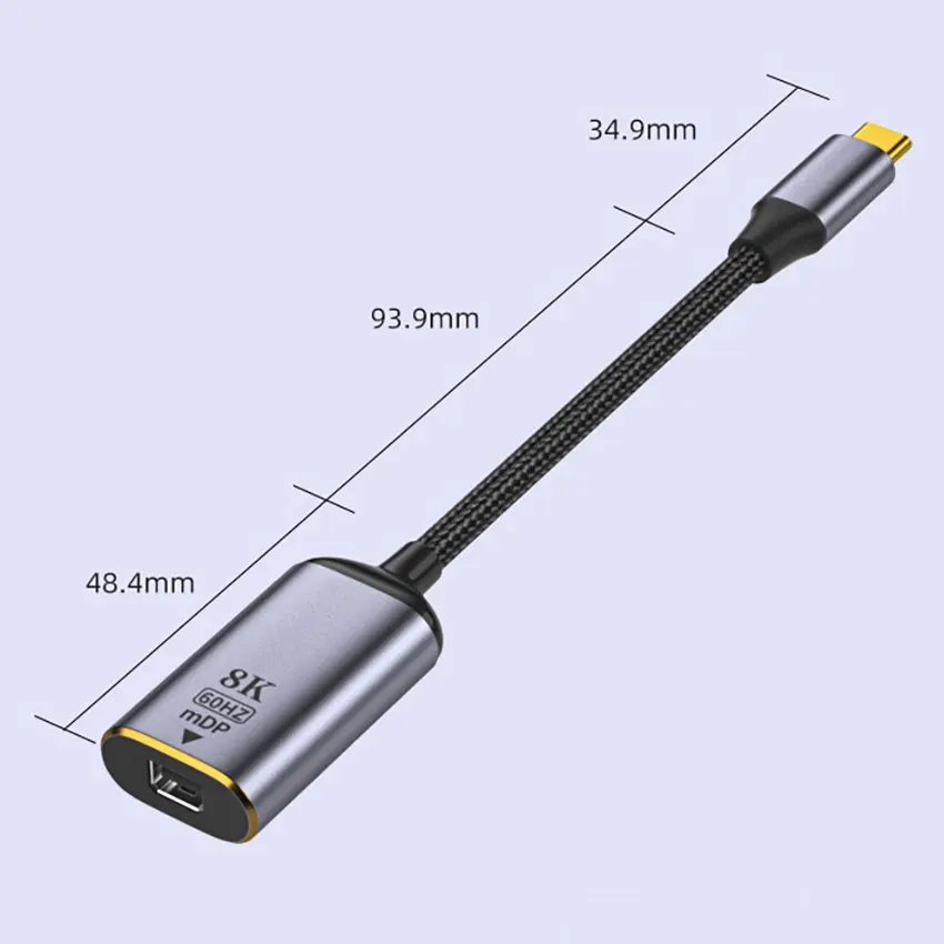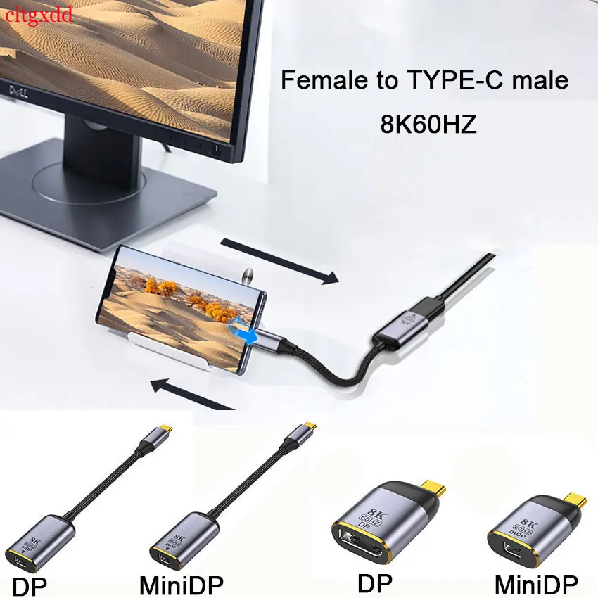 Comprar DP hembra a TYPE-C macho de línea corta mini DP hembra a TYPE-C macho, convertidor de cable de enchufe 8K 60HZ HD, convertidor de vídeo y audio
