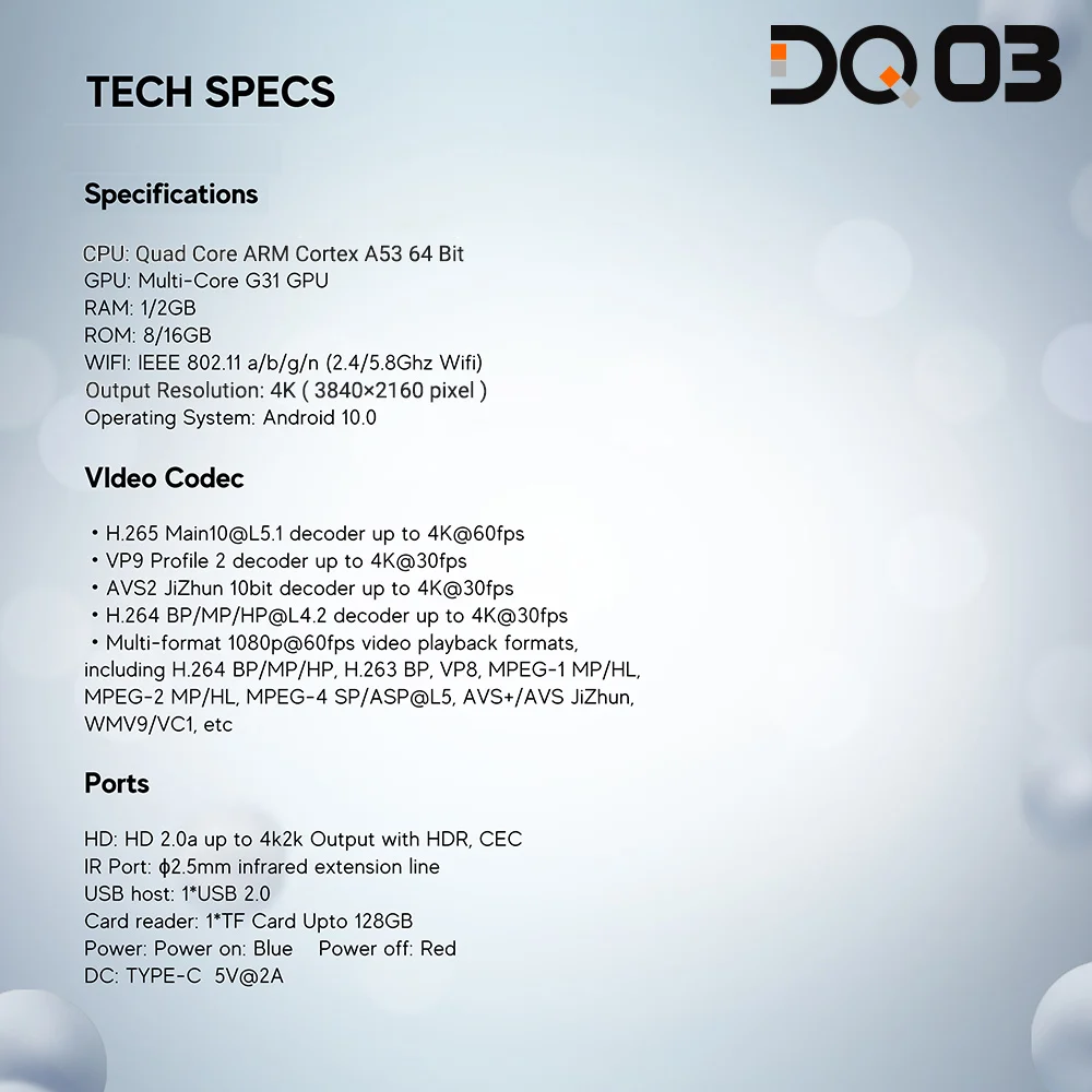 OS: Android 10,DDR3 GB 1/2GB,eMMC 8GB/16GB;