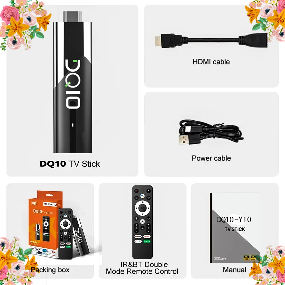 DQ10 Smart TV Stick Android13 Allwinner H618 BT5.0 compatible con vídeo 8K 4K Wifi6 BT voz remota Google Youtube reproductor multimedia TV Box