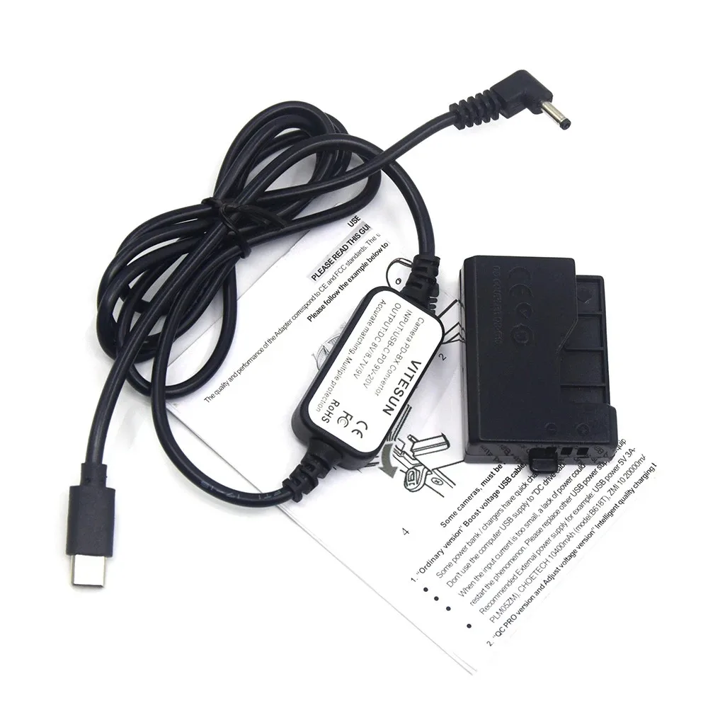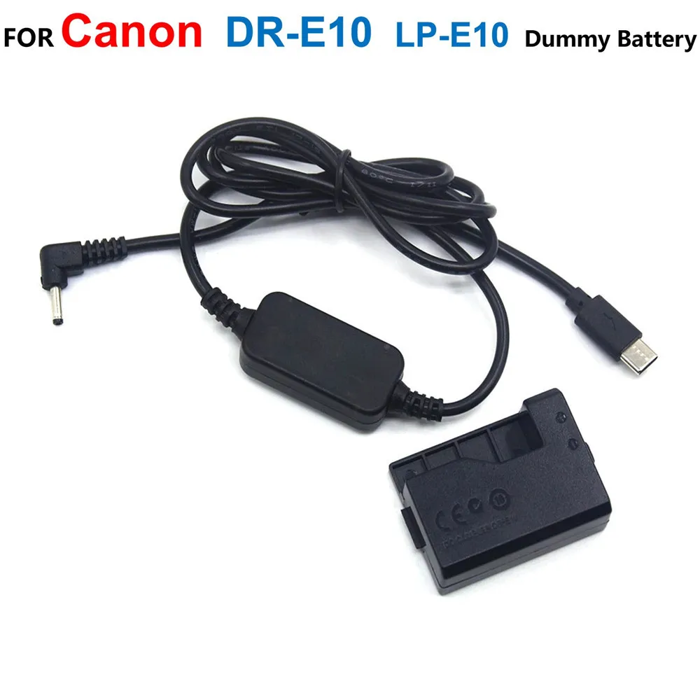 Convertidor USB-PD tipo C a Cable CC + batería falsa DR-E10 LP-E10 para Canon EOS 1200D 1300D 1500D X90 X80 X70 X50 T5 T6 T7