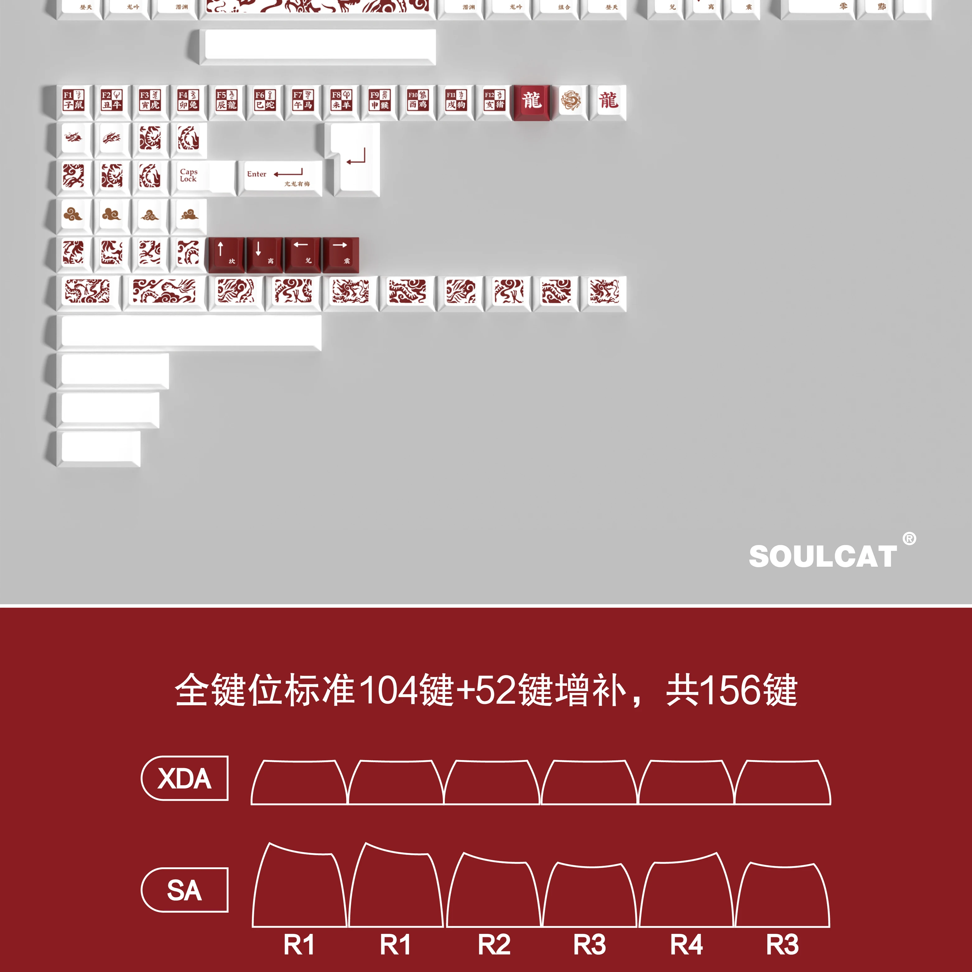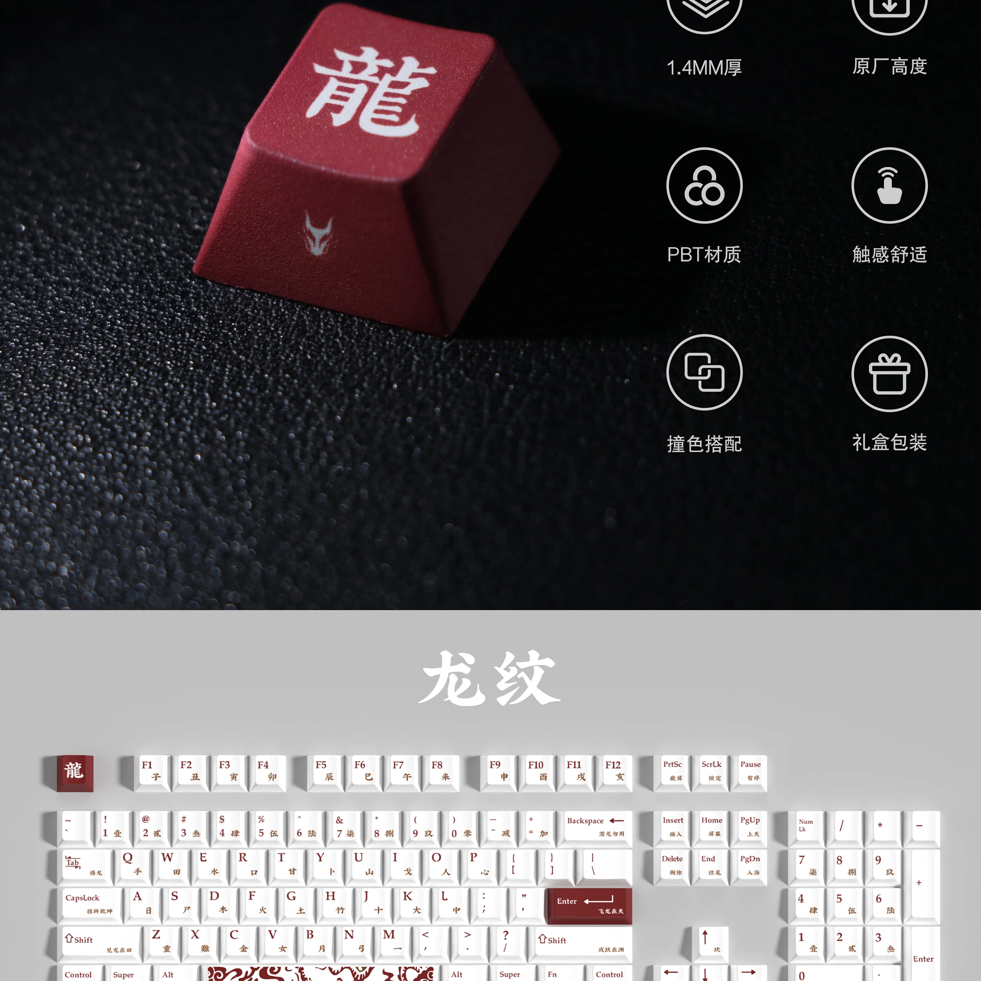 Teclas con tema de dragón, 156 teclas, teclas de sublimación PBT, perfil de cereza Original, teclas personalizadas, accesorios para teclado mecánico