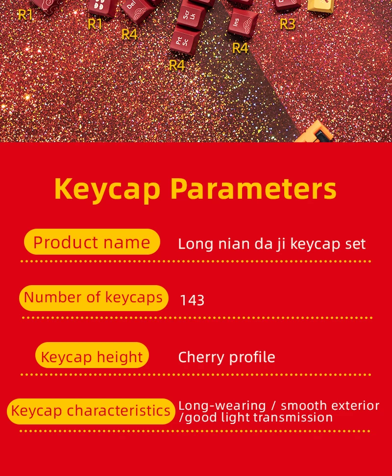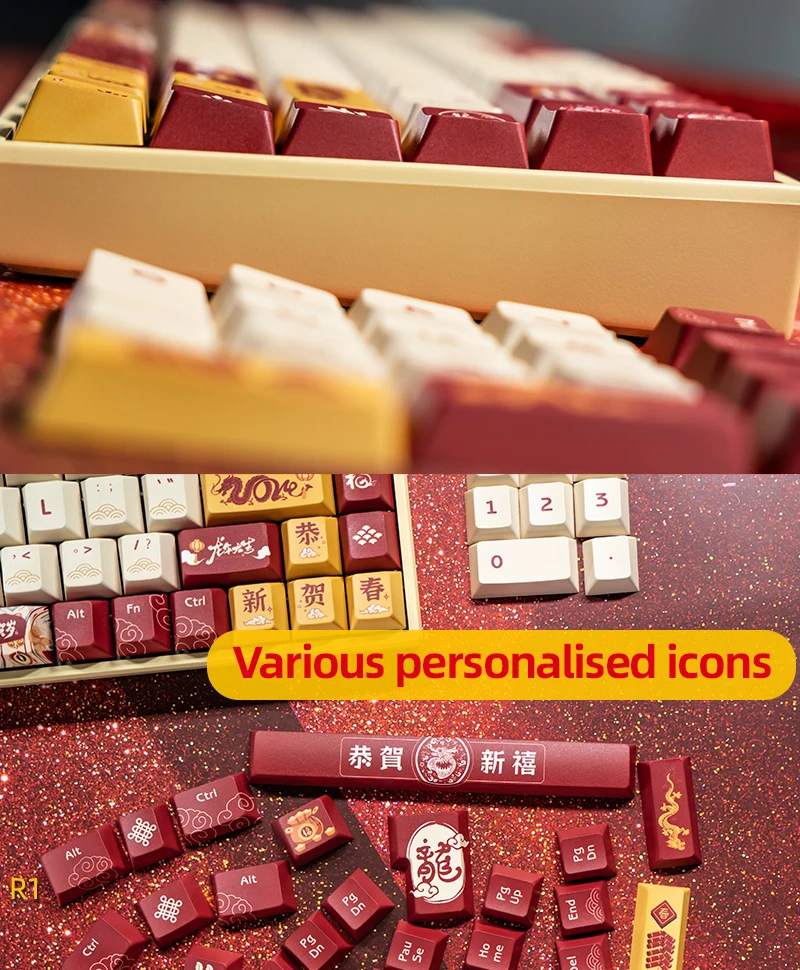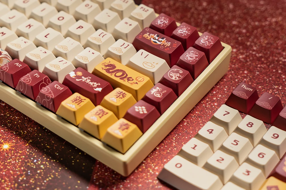 Dragon Year Good Luck Dye Subbed Keycap, Cherry Profile Set, PBT grueso para teclado 87 tkl 104 ansi xd64 bm60 xd68 xd84 BM87 BM65