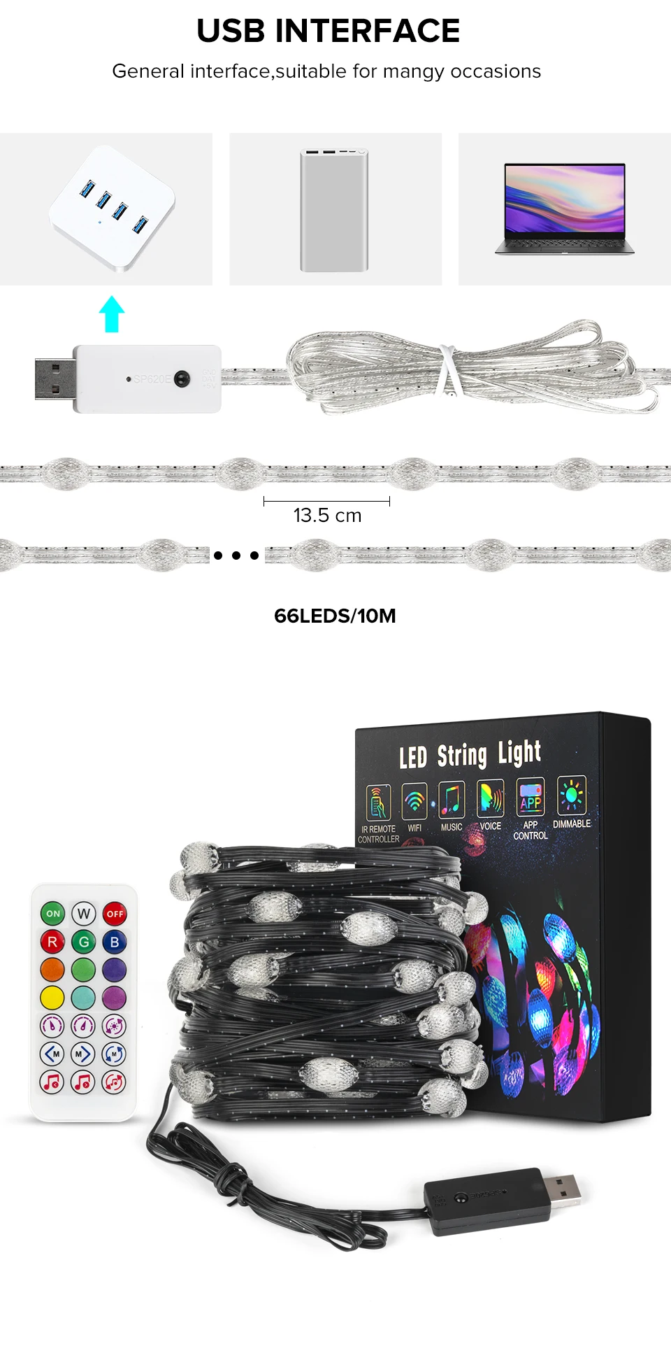 Dreamcolor USB LED String Light BT Music APP WS2812B Guirnalda de luces de hadas para Navidad Fiesta de cumpleaños Decoración impermeable