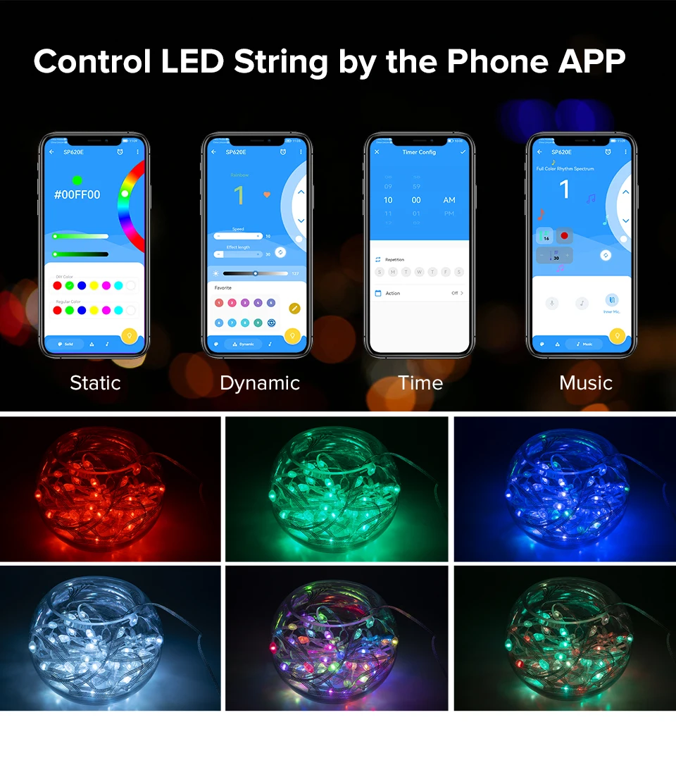 Comprar Dreamcolor USB LED String Light, BT Music APP, WS2812B, guirnalda de luces de hadas para Navidad, decoración de fiesta de cumpleaños, impermeable