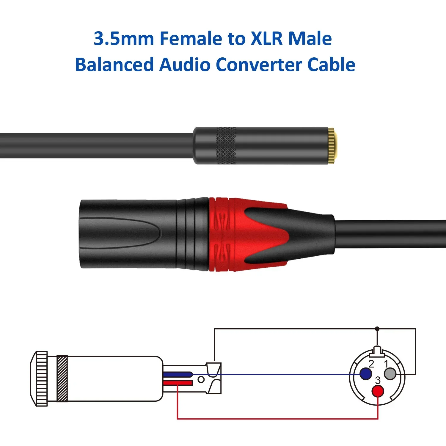 SUEÑOCable equilibrado estéreo de 3,5mm a XLR, 3,5mm 1/8 pulgadas hembra a 3 pines XLR macho Adaptador convertidor cable de audio