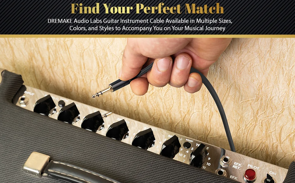 Los cables de guitarra Premium DREMAKE se desarrollaron específicamente para proporcionar un sonido de mayor calidad porque cuentan con cableado largo blindado, enchufes chapados en oro, y una conexión conveniente que todos trabajan juntos para eliminar el ruido y dejar que su sonido brille a través.