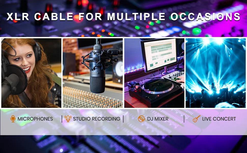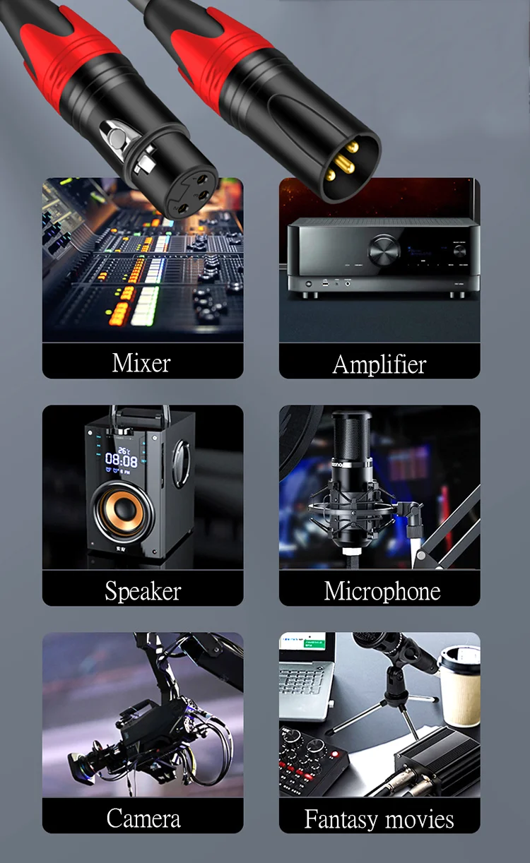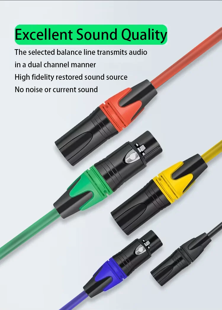 ⭐【Amplia compatibilidad】El cable XLR es perfectamente compatible con equipos con conectores de 3 pines como micrófonos, iluminación de escenario, tableros de mezclas, amplificadores de potencia, armonizadores de estudio, parlantes, bandejas, etc.Además, estos cables XLR se utilizan ampliamente en parlantes de escenario, escenarios de clubes, KTV y cine en casa. Impedancia de más de 120 ohmios.