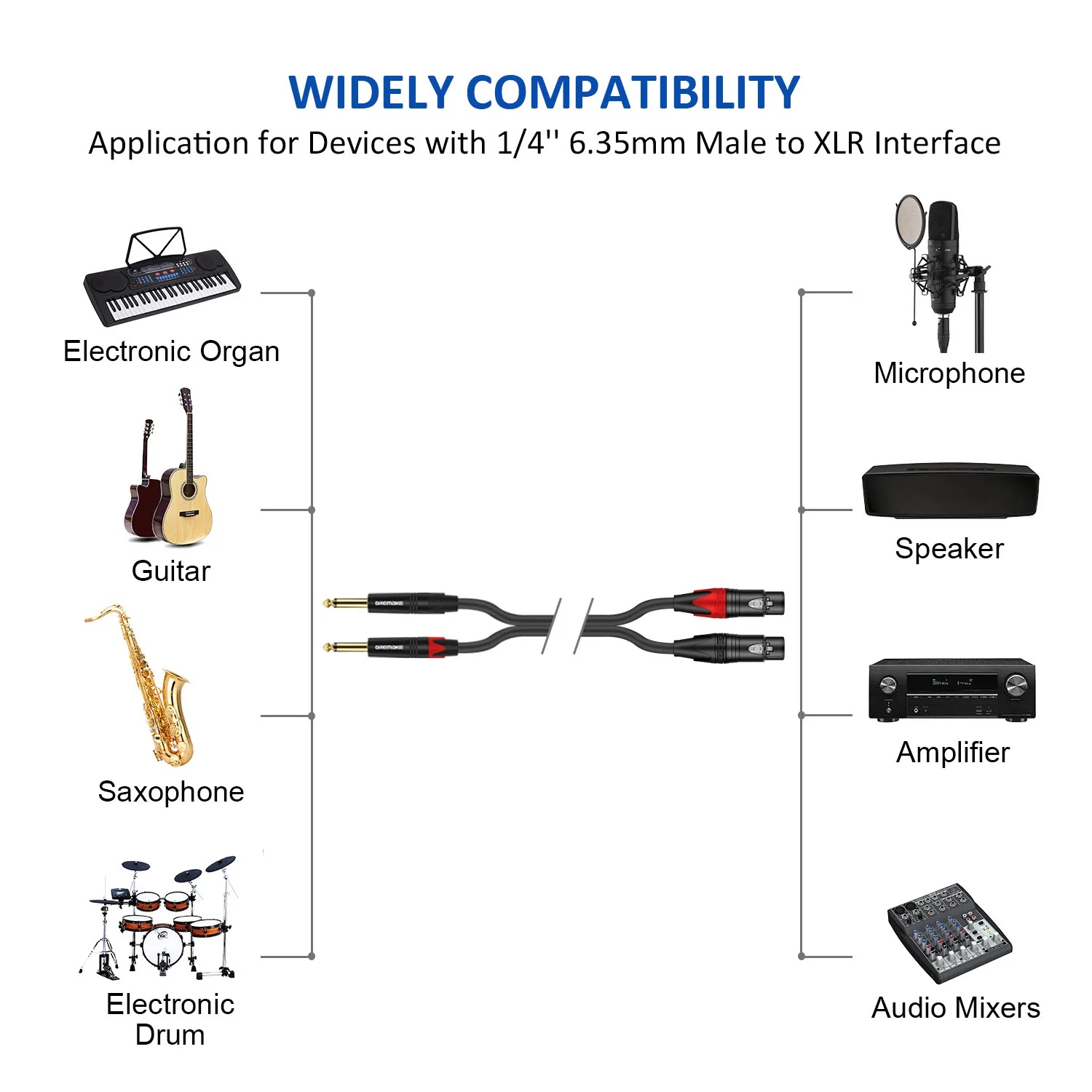 ⭐Amplia compatibilidad: cable XLR hembra equilibrado a 1/4 pulgadas diseñado para conectores XLR macho a equipos con conector TRS de 1/4 pulgadas, ampliamente utilizado como cables de señal en grabaciones de estudio, amplificadores, mezcladores, guitarras, y así sucesivamente. Disfruta de la vida musical en cualquier momento.