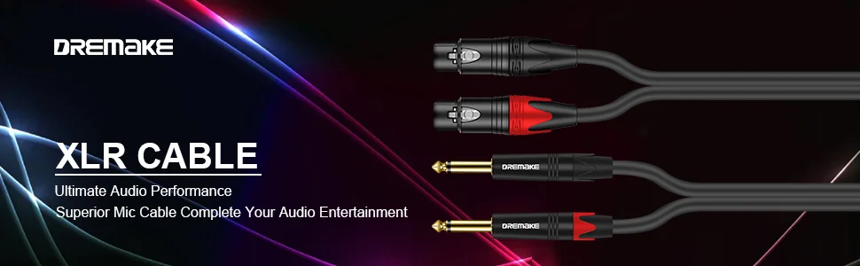 1 x DREMAKE Dual 1/4 pulgadas TS macho a Dual XLR Cable adaptador de micrófono hembra de 3 pines