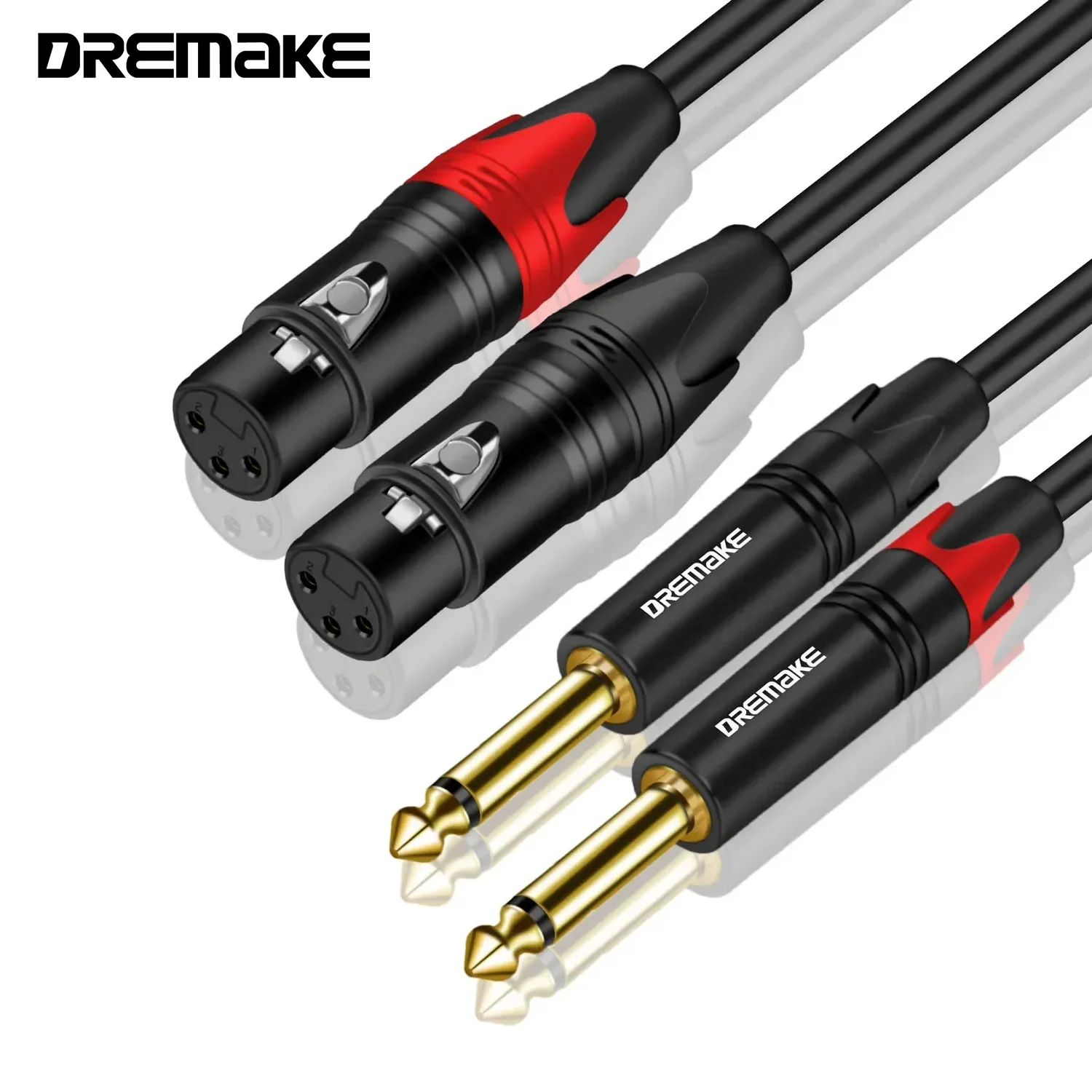 Comprar DREMAKE-Cable de micrófono macho TS de 1/4 pulgadas, Conector de 2x6,5mm a 2 XLR hembra de 3 pines para placa mezcladora, altavoz Dual XLR a Cable de conexión Dual de 6,35mm