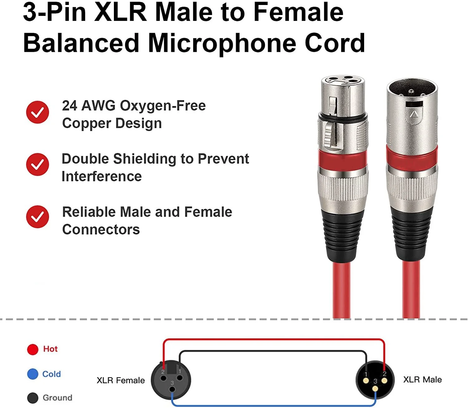 Compatible con equipos con conectores XLR de 3 pines como conciertos en vivo, armonizadores de estudio, mezcladores, banderas, preamplificadores, tableros de mezclas, sistemas de altavoces e iluminación de escenario, micrófonos de escopeta, etc.