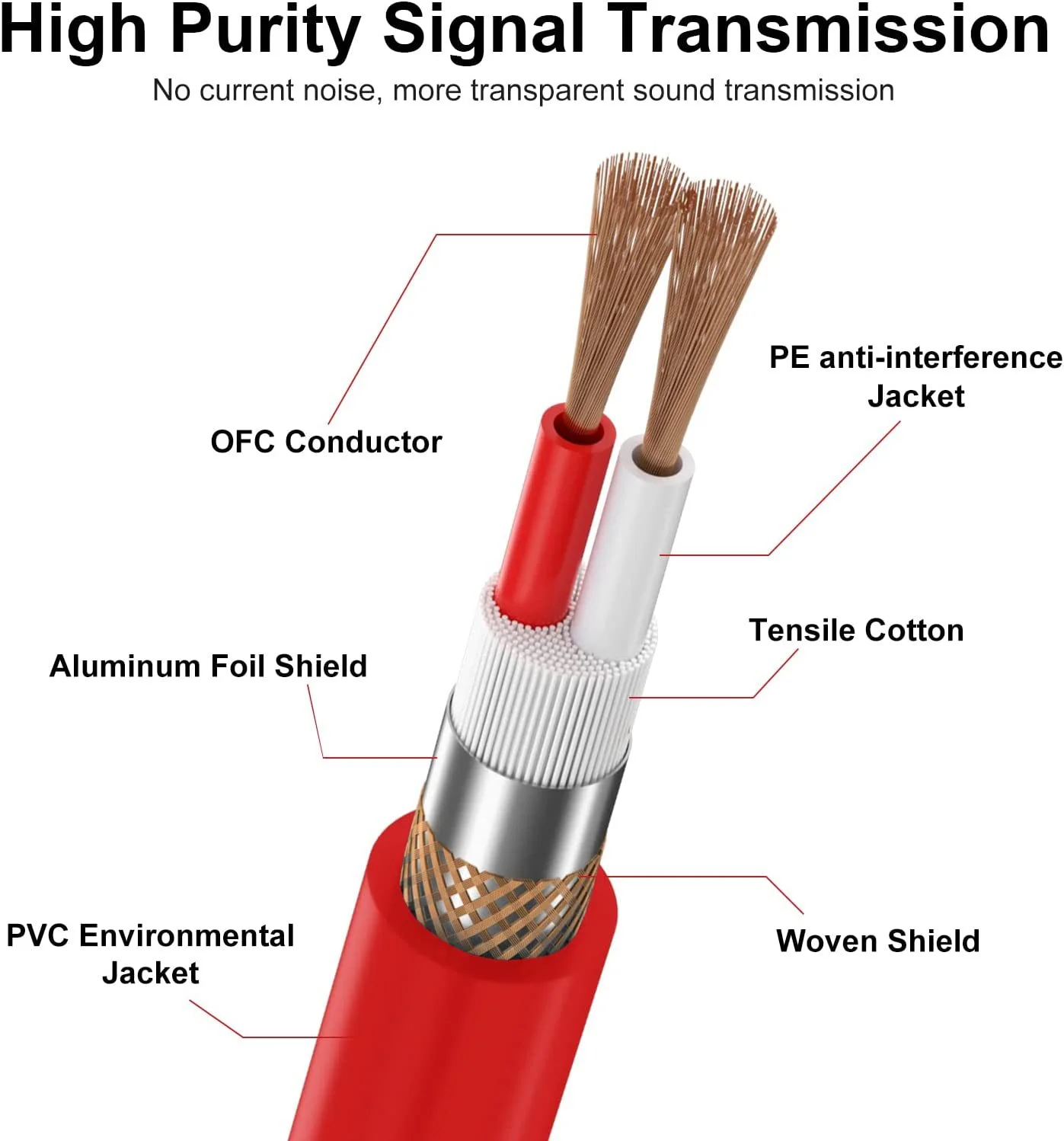La alta cobertura de cables de audio balanceados de cobre sin oxígeno, la lámina blindada y la capa blindada de metal transmite sin problemas el audio para el tono, mientras maneja el ruido y las interferencias.
