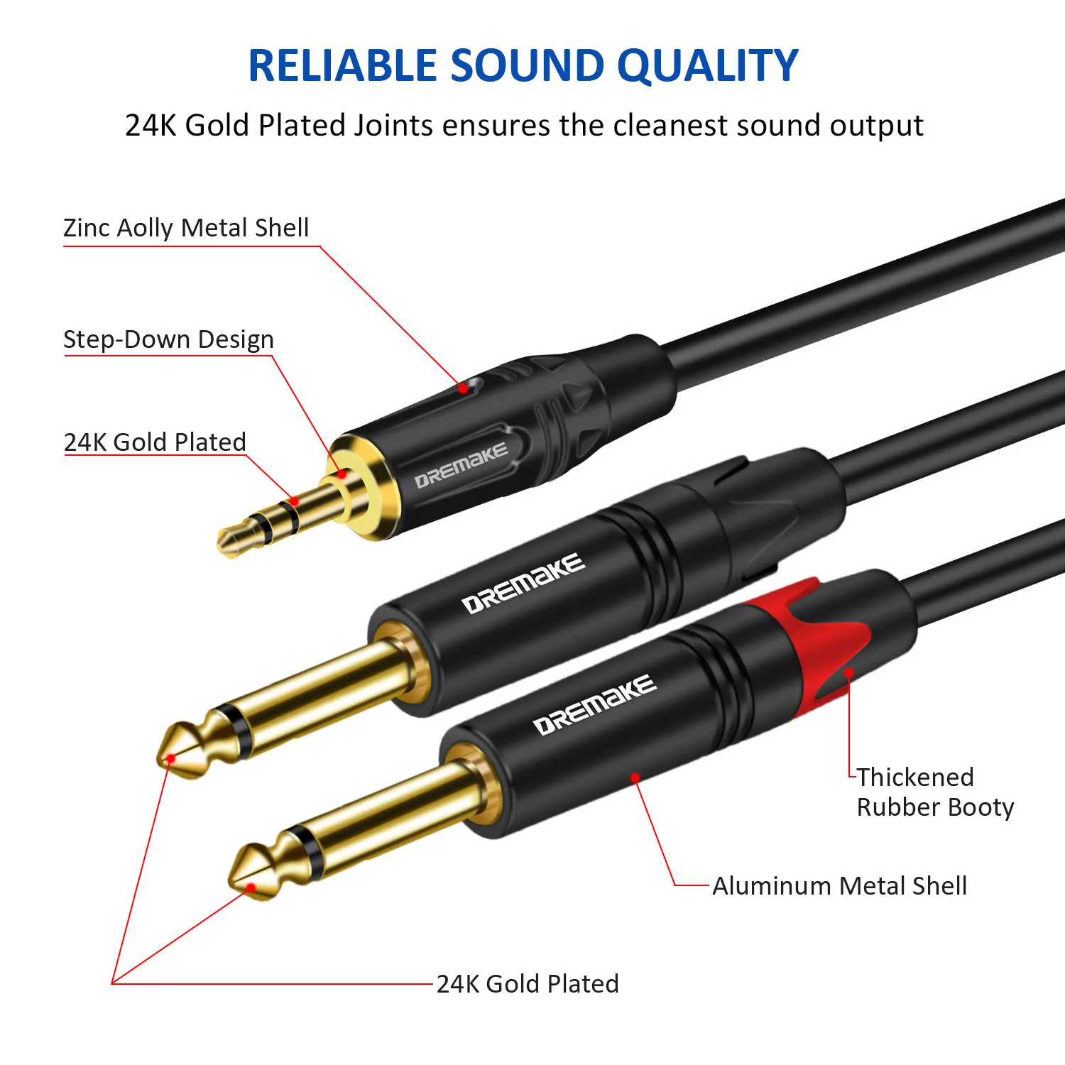 1 x DREMAKE 1/8 ''estéreo a doble 1/4'' mono cable de audio