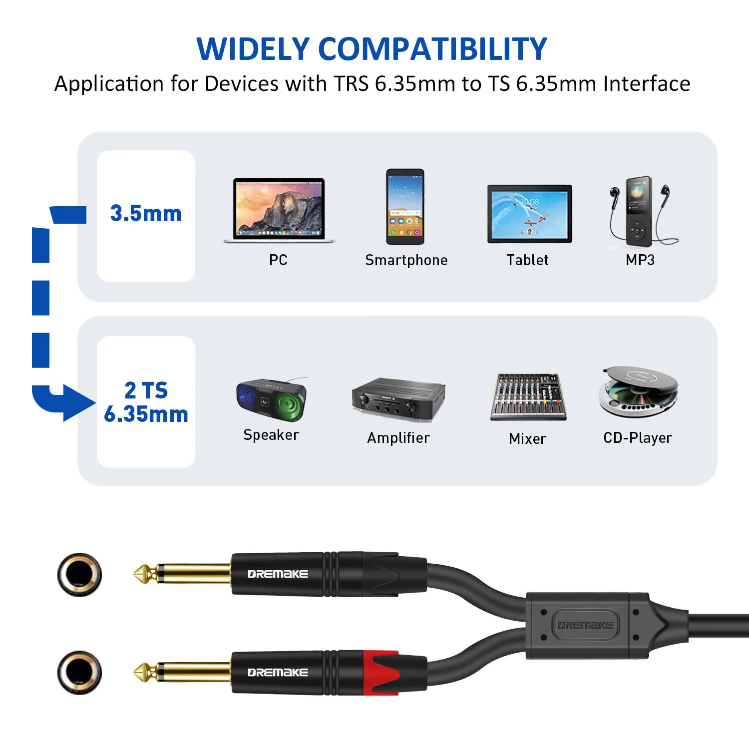 Comprar DREMAKE-Cable TRS a Dual 3,5mm 1/8 ''TS Mono, TRS 6,35'' a 2x1/4 ''TS M-M, Audio estéreo Y Splitter Breakout