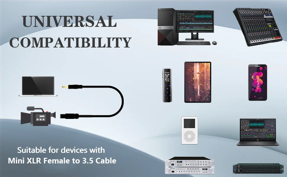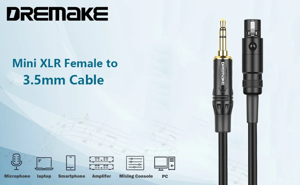 DREMAKE 3,5 mm (1/8 pulgadas) Cable macho con conector de audio estéreo TRS a mini-XLR hembra.Funciona muy bien y es exactamente lo que necesitas.Hará que su música suene muy clara y potente.