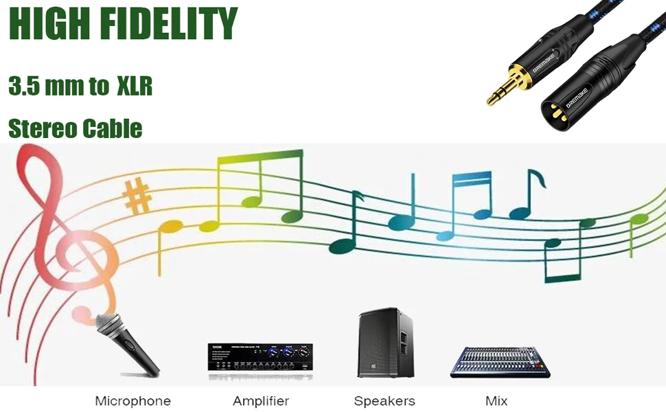 Cable DREMAKE xlr a 3,5 mm, mini conector desbalanzado de 3,5 mm a cable XLR, cable macho 1/8 a xlr macho