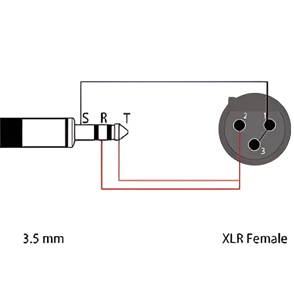 Nota: Este es el cable no balanceado, que combina el estéreo izquierdo y derecho con la entrada mono, los canales L/R que se soldaron entre sí, haciendo que la señal mono en XLR Pin 2, el XLR Pin 1 y el Pin 3 que se cortocircuitan a tierra, no el cable balanceado