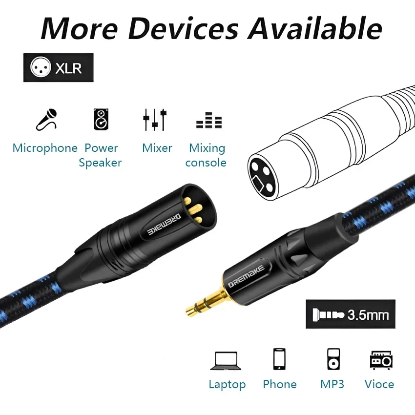 Cable DREMAKE xlr a 3,5 mm, mini conector desbalanzado de 3,5 mm a cable XLR, cable macho 1/8 a xlr macho