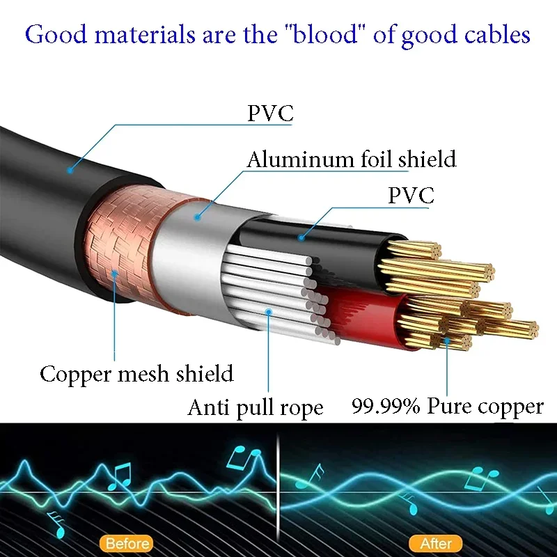 El cable macho de 1/8 a macho xlr está hecho de cobre libre de oxígeno 24 AWG 4N, con blindaje, que puede garantizar una calidad de sonido de alta fidelidad y proporcionar la máxima conductividad y claridad de la señal.Una gran opción para los amantes de la música.