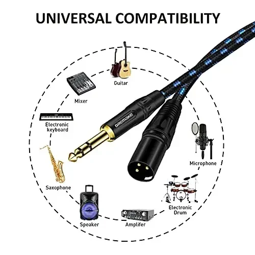 COMPONENTE DEL PRODUCTO: DREMAKE TRS 6,35mm(1/4 pulgadas) a XLR Cable de audio de interconexión balanceado macho de 3 pines, Cable XLR a 6,35mm, Cable de instrumento XLR a 1/4 pulgadas, cable de micrófono macho de 1/4 ''6,35mm a XLR macho, Jack 6,35mm a XLR, XLR a cuarto de pulgada, Jack 6,35mm macho a XLR Cable de conexión macho de 3 pines