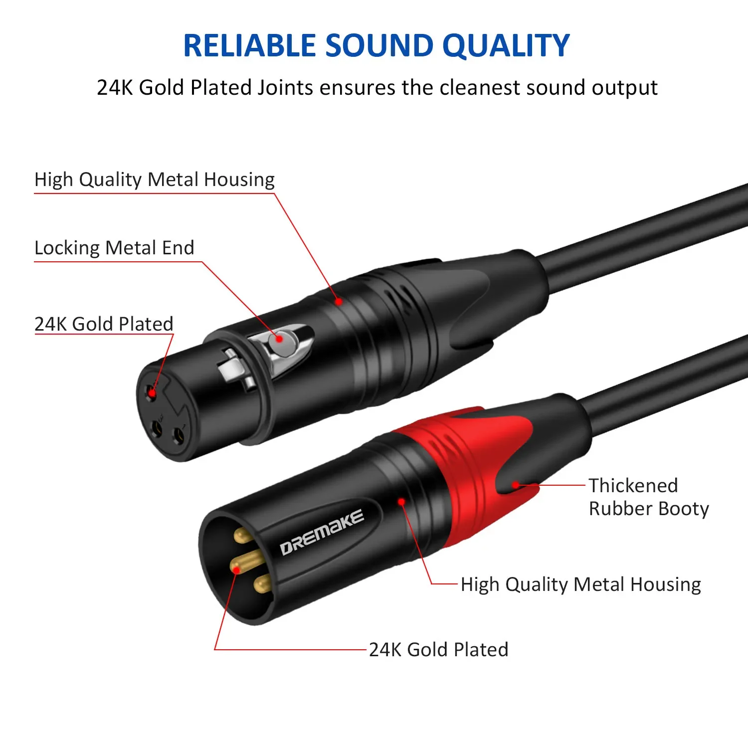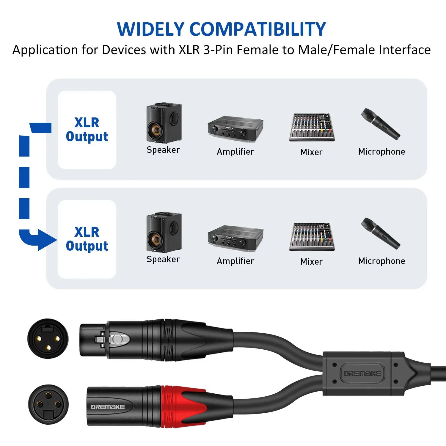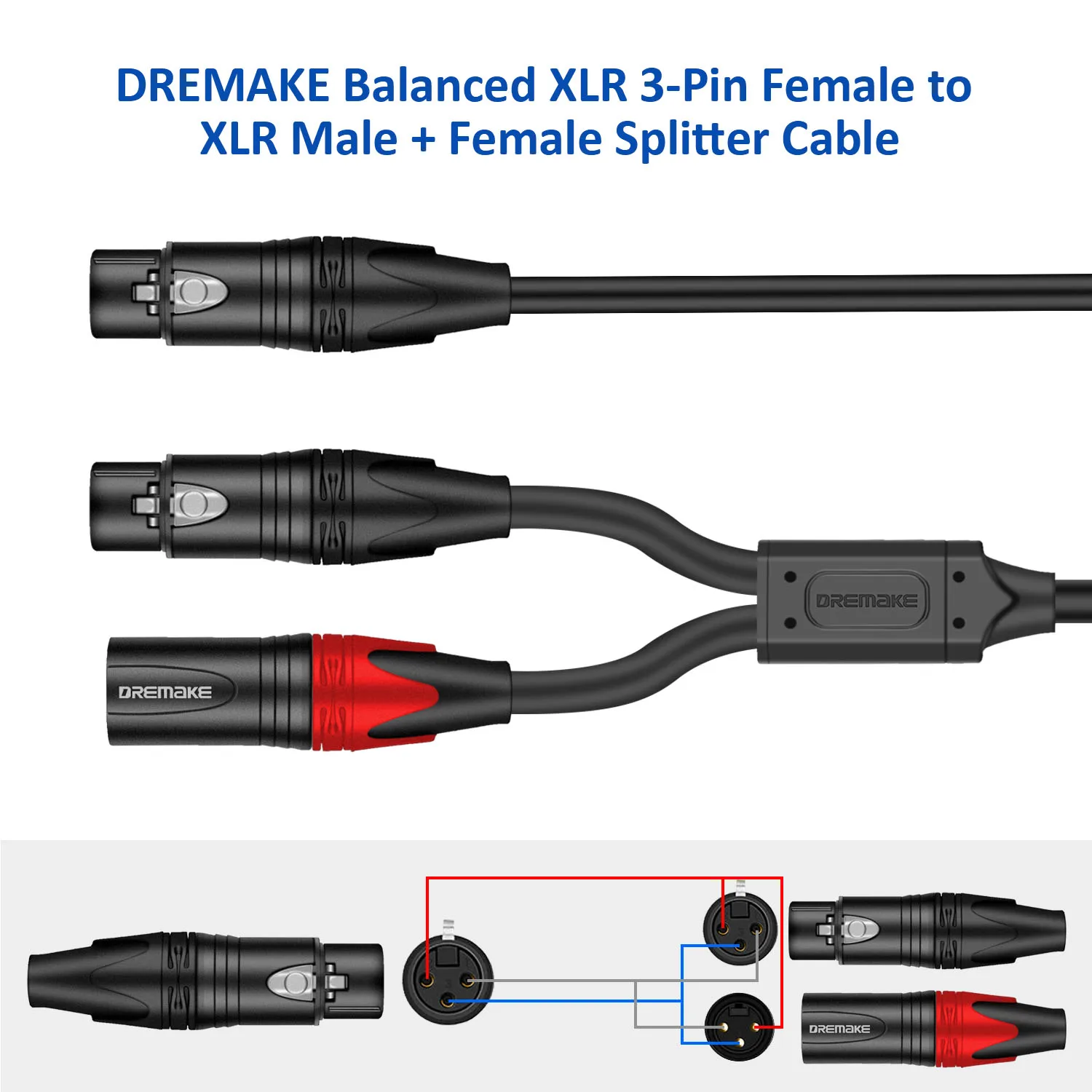 Comprar DREMAKE XLR y-splitter hembra a macho hembra micrófono equilibrado divisor macho a Cable Jack cobre libre de oxiácido XLR (3 pines)