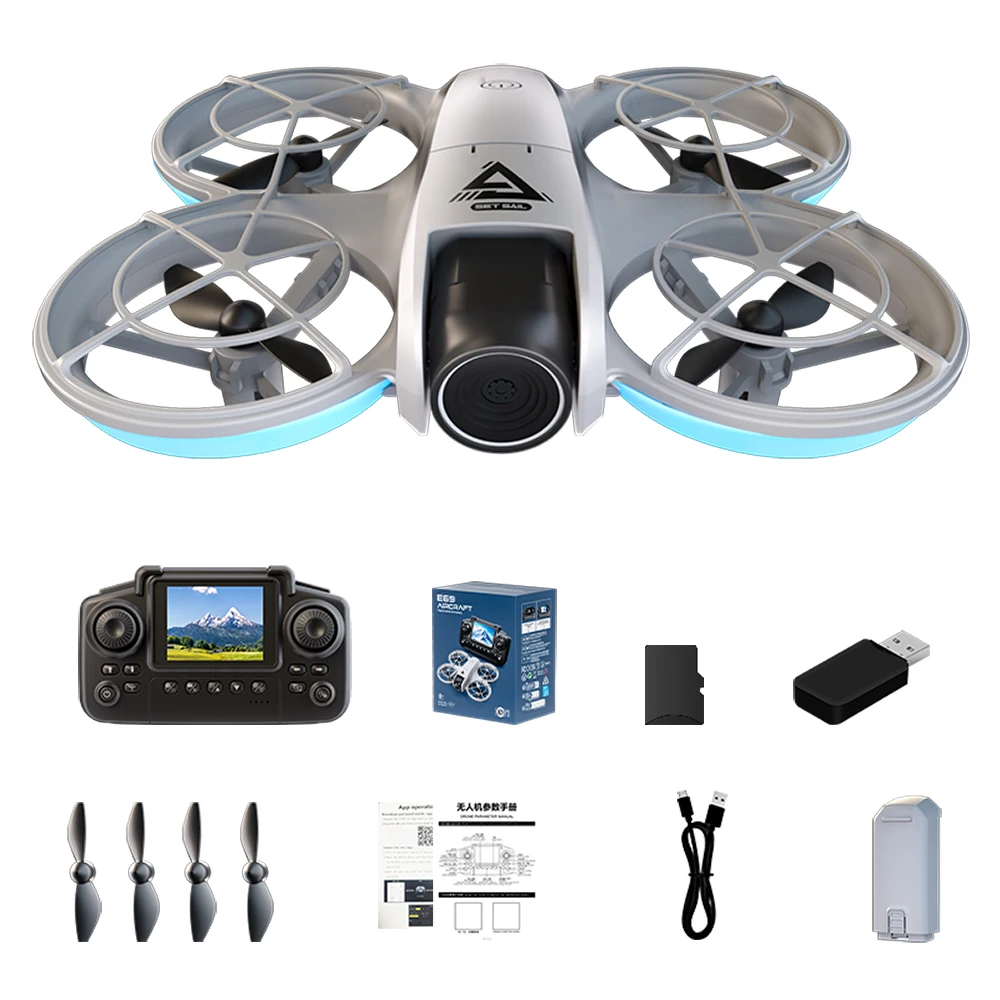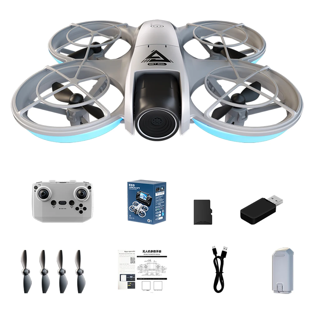 Función: arriba/abajo/delantero/trasero, giro izquierda/derecha, vuelo lateral, luz LED, 360° Roll de acrobacias, modo sin cabeza, retorno automático con un clic, modo de mantenimiento de altura WiFi FPV, cámara dual conmutable, admite paisajes/retratos/grabación con cabeza, cámara eléctrica ajustable 180°