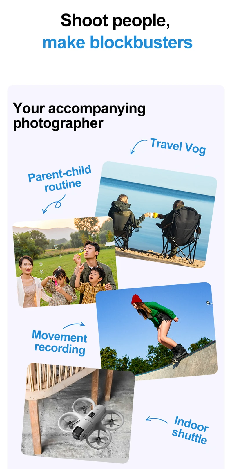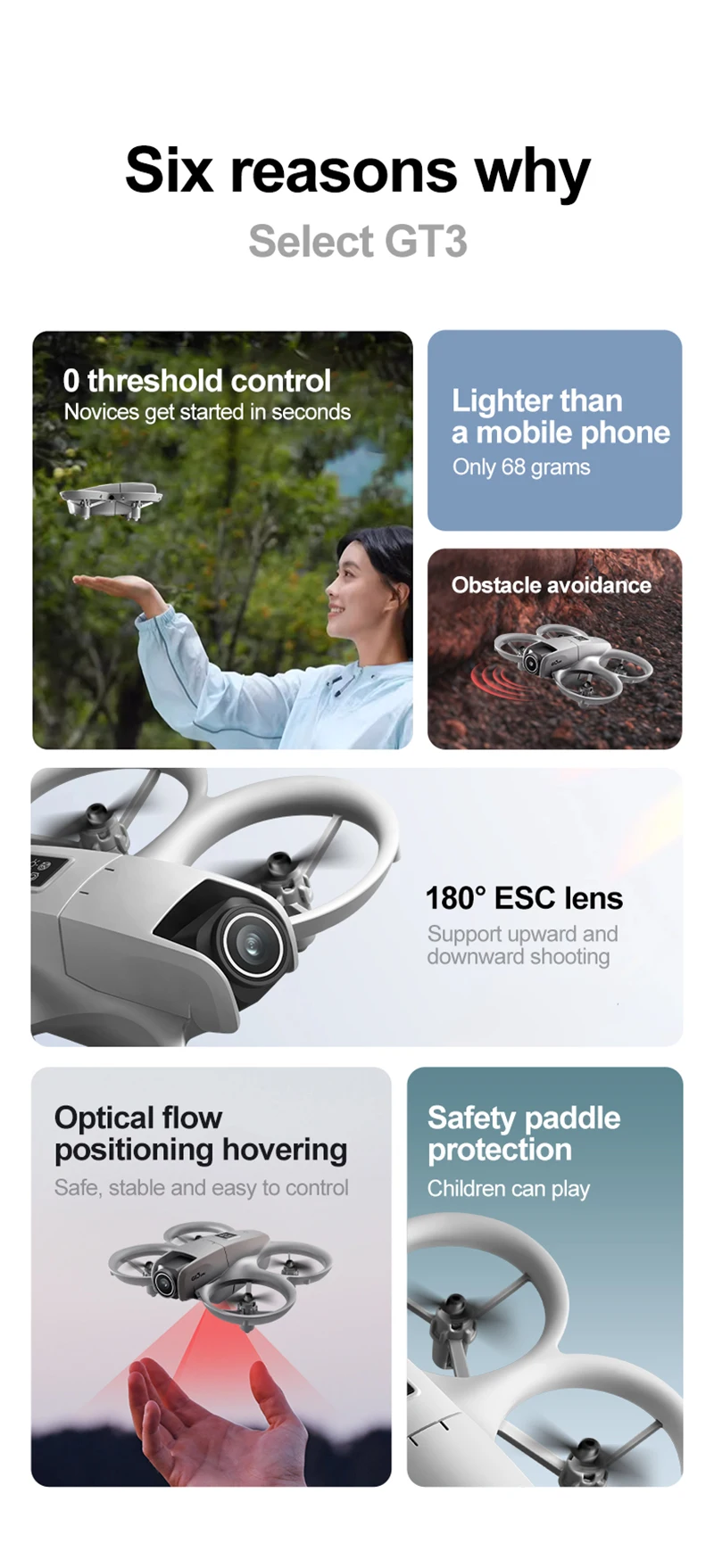 6.Fotografía de gestos, posicionamiento de flujo óptico, motor sin escobillas, batería de duración súper larga, componentes de cardán para evitar obstáculos, parada sin colisión al encontrar obstáculos