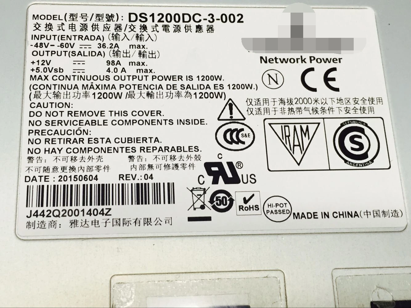 Comprar DS1200DC-3-002 para fuente de alimentación centralizada conmutada EMERSON