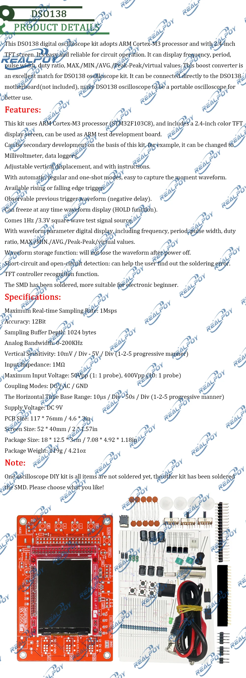 DSO138 2,4 "pantalla TFT osciloscopio Digital Diy Kit pantalla de forma de onda precisión DSO138 caja acrílica para Arduino