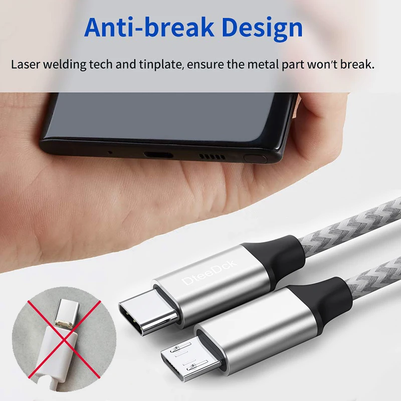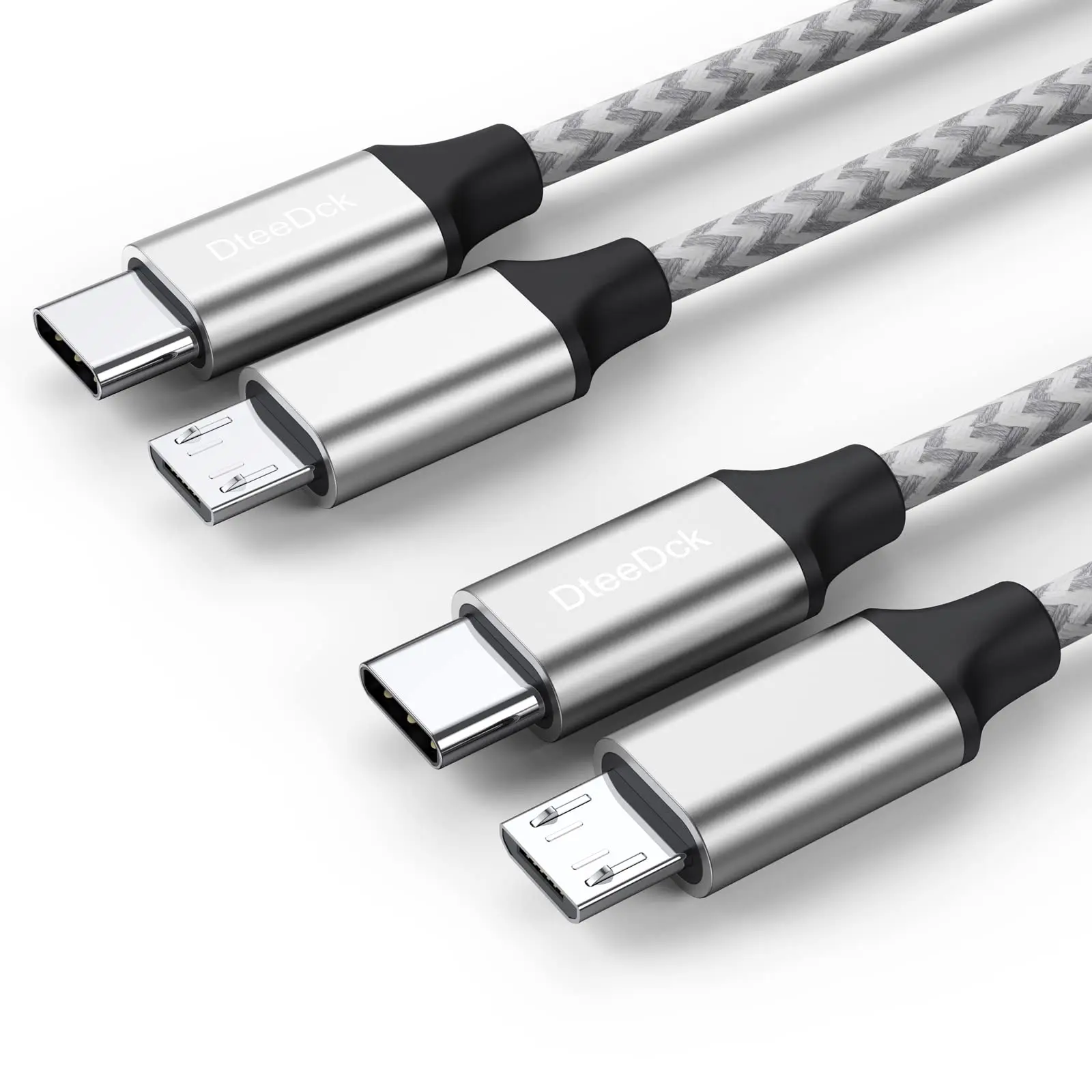 Comprar DteeDck Cable USB C a Micro USB Nylon trenzado tipo C a adaptador de cable Micro USB para transmisión de datos de carga de teléfono portátil