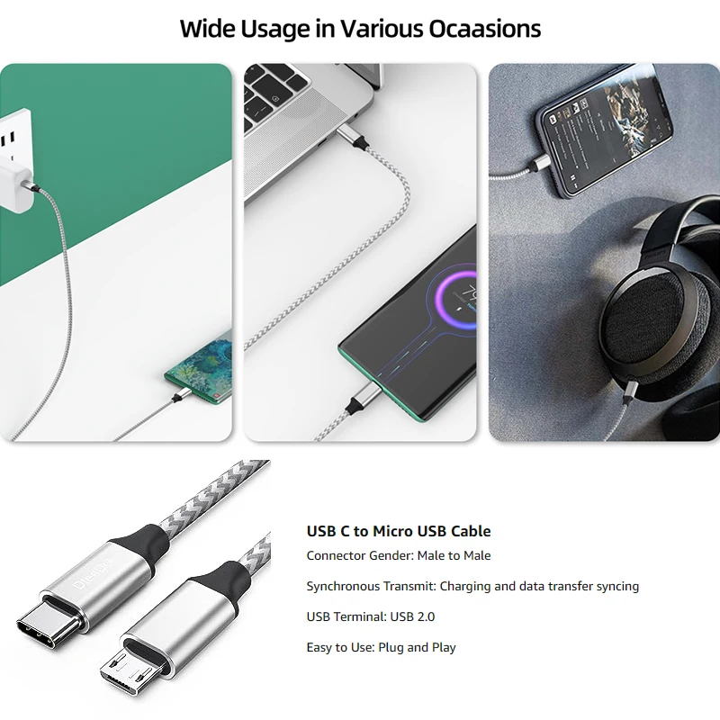 4.Diseñado para durar cable Micro USB a Tipo C con una cubierta trenzada reforzada, construcción robusta y conectores USB con alivio de tensión moldeado para desconexión frecuente;El cable USB-C a Micro-USB completamente blindado proporciona un rendimiento de transmisión superior y proyectos contra el ruido EMI/RFI;La garantía de por vida y el soporte del producto para este cable brindan tranquilidad al comprar