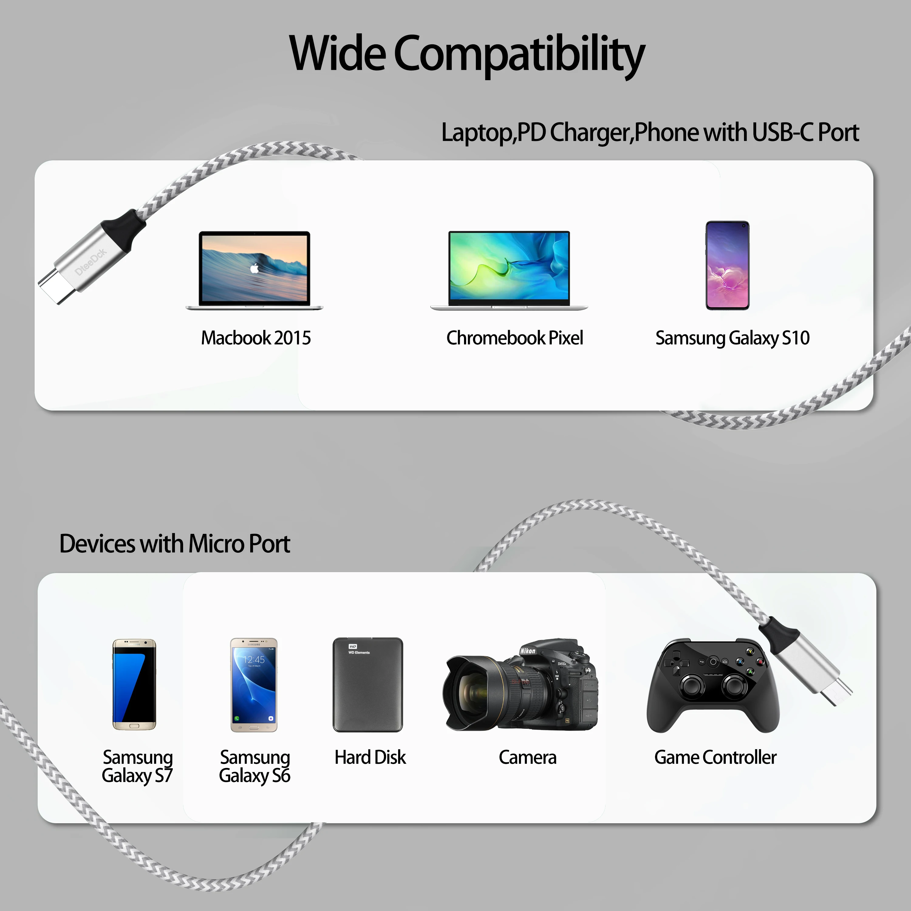 2.El cable USBC a micro USB portátil de diseño compacto conecta un teléfono inteligente, una cámara, un controlador de juegos u otros dispositivos con puerto micro USB a una computadora portátil, teléfono, iPad u otros dispositivos con puerto USB-C.
