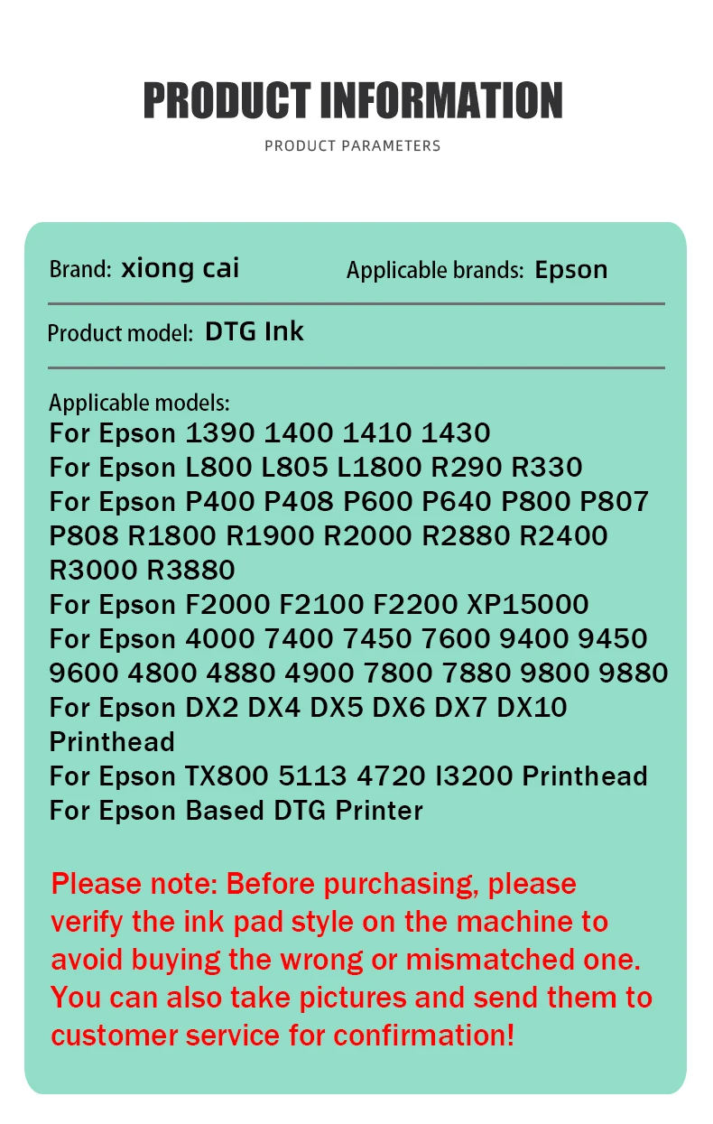 Comprar DTG インク 1000ml Epson 4880/4900/7800/9800 およびその他の大判プリンタ DX2/DX4/DX7/DX10/TX800/5113/4720 プリントヘッドに適しています