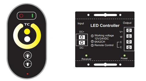 Comprar Dual Color Temperature Remote Control LED Controller DC 12-24V 2 Channels Wireless RF Touch Remote Control CT Controller