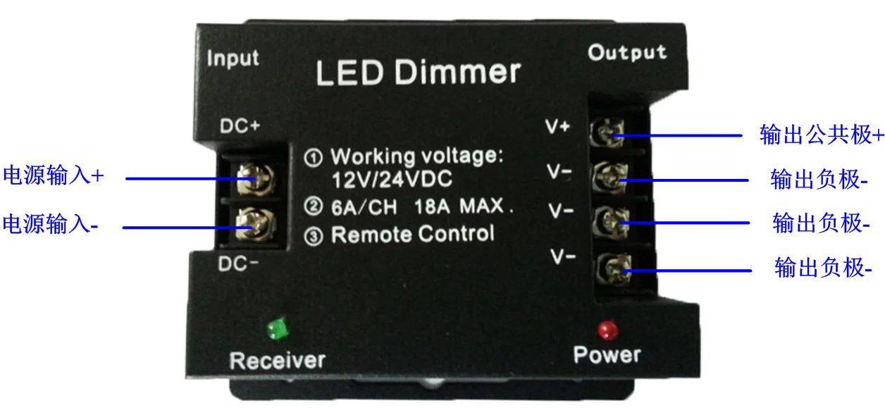 DC +: terminal de entrada positiva de la fuente de alimentación (voltaje de fuente de alimentación DC12 ~ 24V)