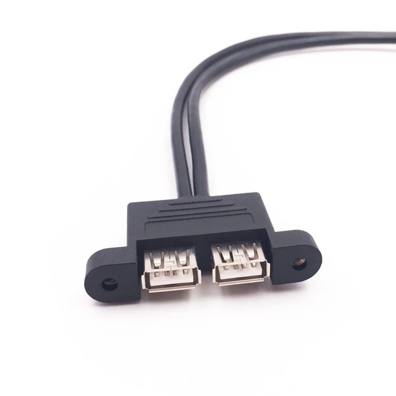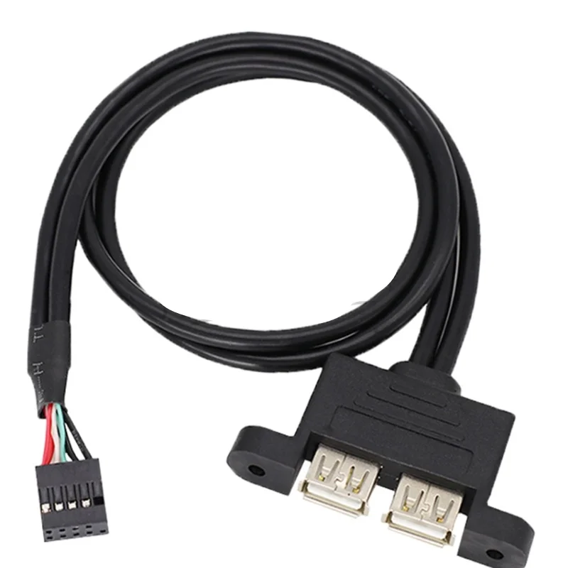 Dual USB 2,0 A tipo hembra a placa base Cable de cabezal de 9 pines con orificios para paneles de tornillos