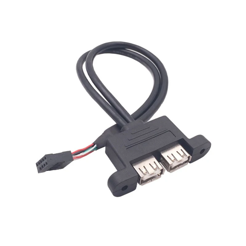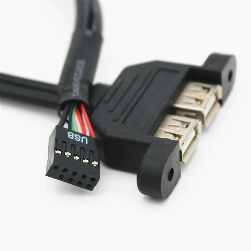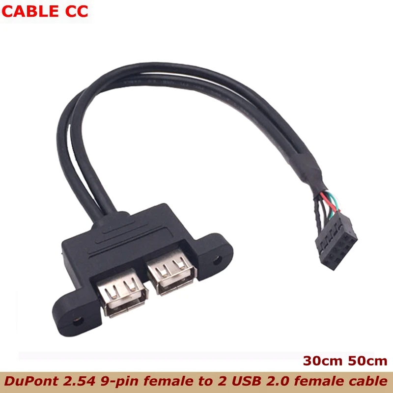Comprar Dual USB 2,0 tipo A hembra A placa base DuPont, Cable hembra de 9 pines con orificio de Panel de tornillo para placa base de computadora, 0,3 m, 0,5 m
