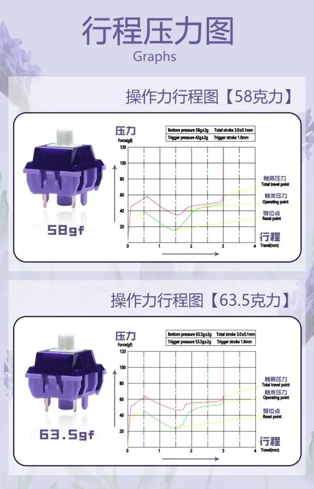 Comprar Duhuk té amargo interruptor púrpura V2 táctil 58g 63,5g interruptores de teclado de efectos de sonido HIFI lubricados manuales