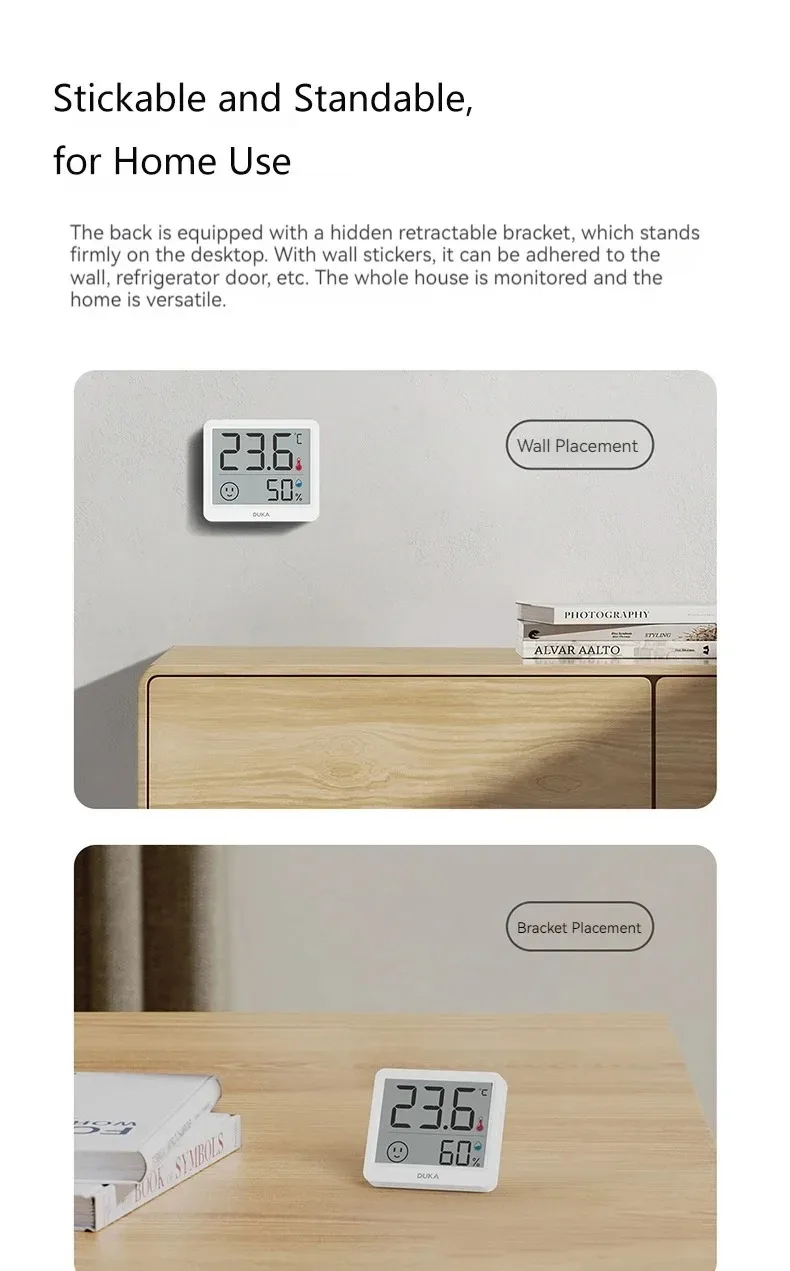 DUKA Atuman-Sensor de temperatura Digital electrónico LCD, medidor de humedad, termómetro interior, higrómetro, estación meteorológica, 2,5 pulgadas
