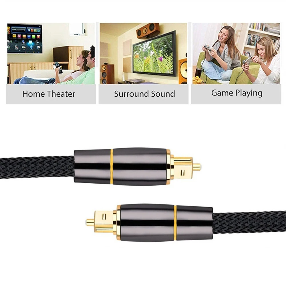 El cable de fibra óptica de audio es un cable imprescindible para la decodificación Dolby/DTS multicanal (5,1, 6,1 y 7,1) para varias transmisiones de señal de corto alcance, comunicación, y equipo de audio con terminales digitales de fibra óptica Conexiones como amplificadores, reproductores de DVD, VCR, reproductores de CD, MD, AMP, PLAYER, mini discos, Convertidores analógicos y digitales a receptores de satélite y dispositivos optoelectrónicos, interruptores, tarjetas 1394, tarjetas de sonido de fibra óptica, decodificadores de cable, cámaras digitales, copiadoras, impresoras, equipos de impresión, sensores de luz y equipos industriales, automoción, equipos médicos y sistemas de energía