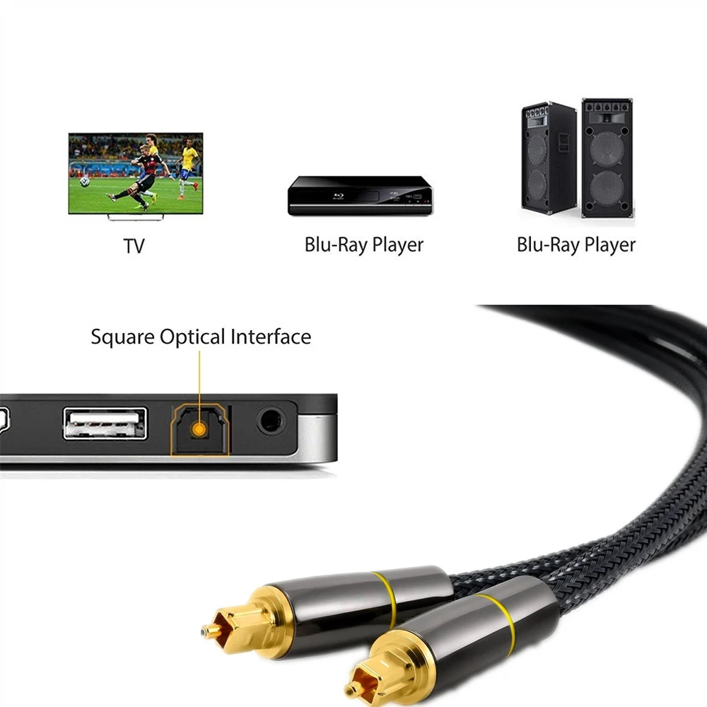 El cable de fibra óptica de audio es un cable imprescindible para la decodificación Dolby/DTS multicanal (5,1, 6,1 y 7,1) para varias transmisiones de señal de corto alcance, comunicación, y equipo de audio con terminales digitales de fibra óptica Conexiones como amplificadores, reproductores de DVD, VCR, reproductores de CD, MD, AMP, PLAYER, mini discos, Convertidores analógicos y digitales a receptores de satélite y dispositivos optoelectrónicos, interruptores, tarjetas 1394, tarjetas de sonido de fibra óptica, decodificadores de cable, cámaras digitales, copiadoras, impresoras, equipos de impresión, sensores de luz y equipos industriales, automoción, equipos médicos y sistemas de energía