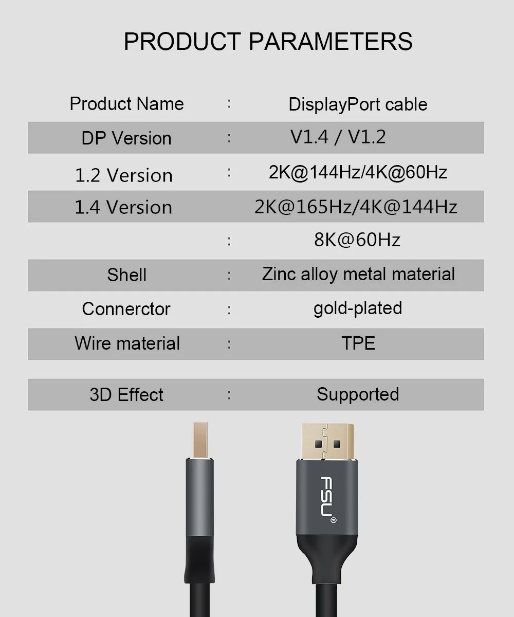 The cable is DisplayPort 1.4 version, resolution up to 8K@60Hz, 4K@144Hz,2K@165Hz.