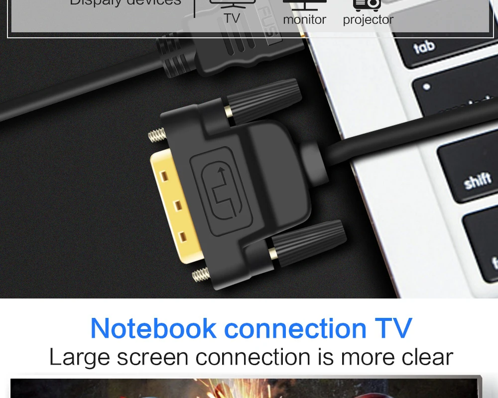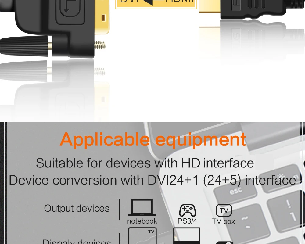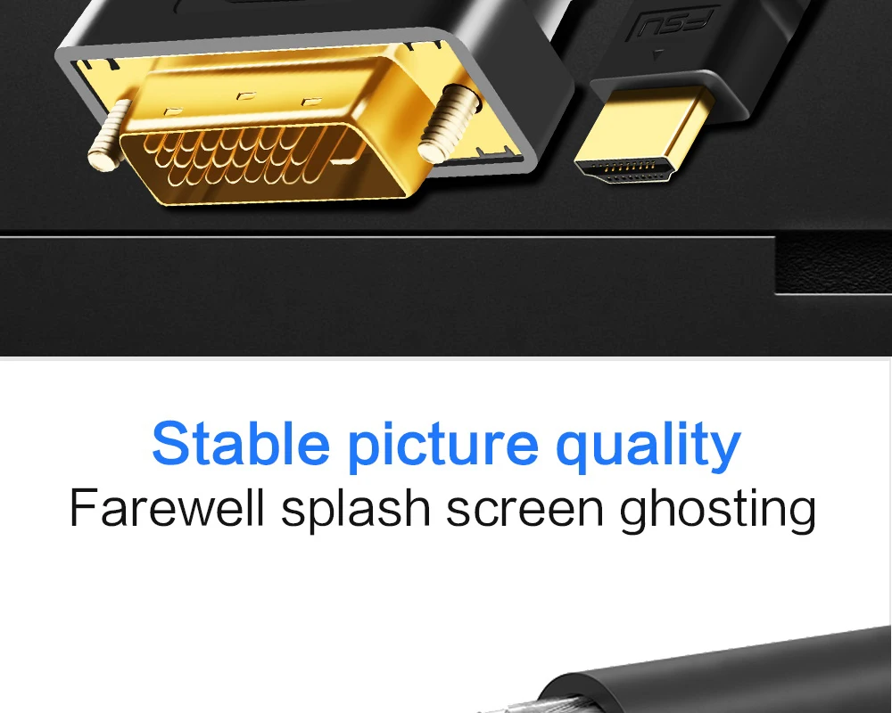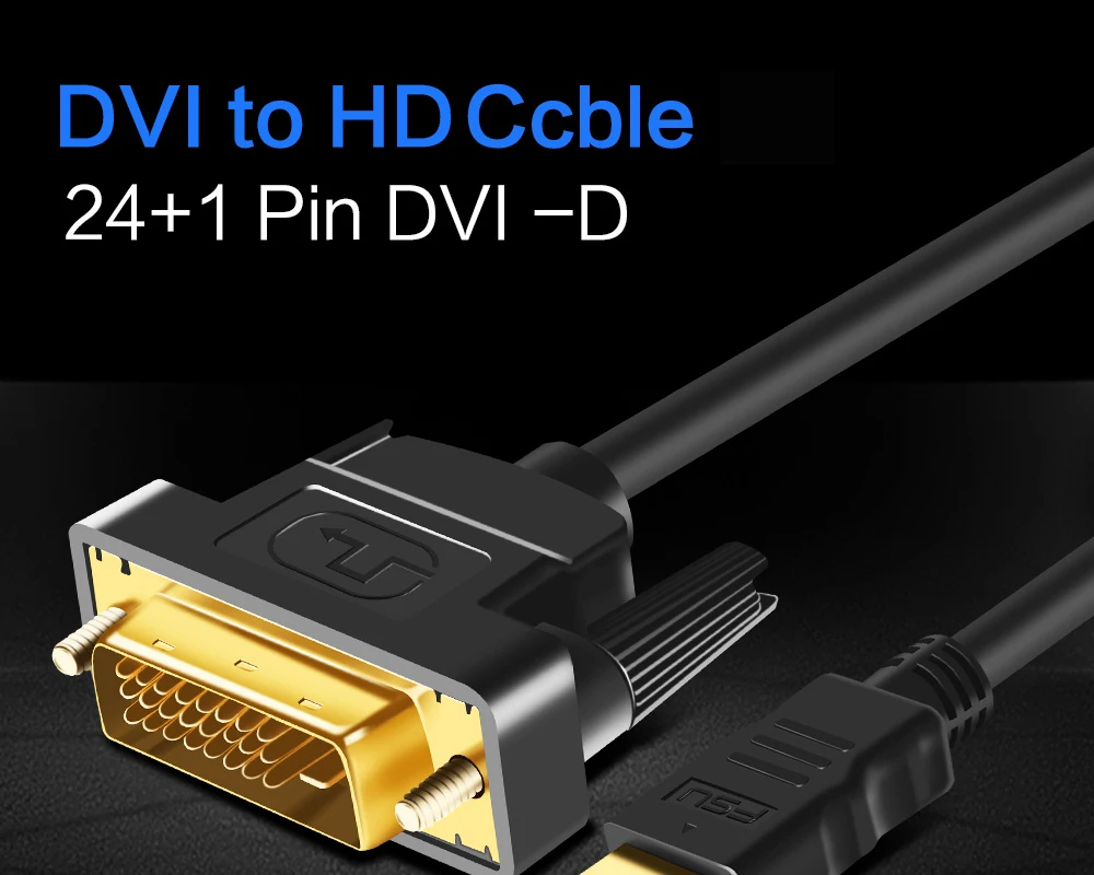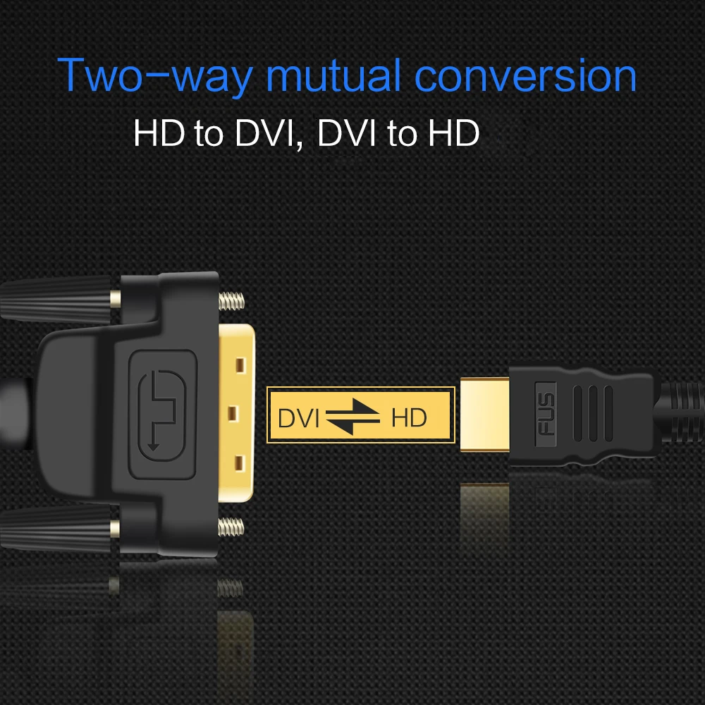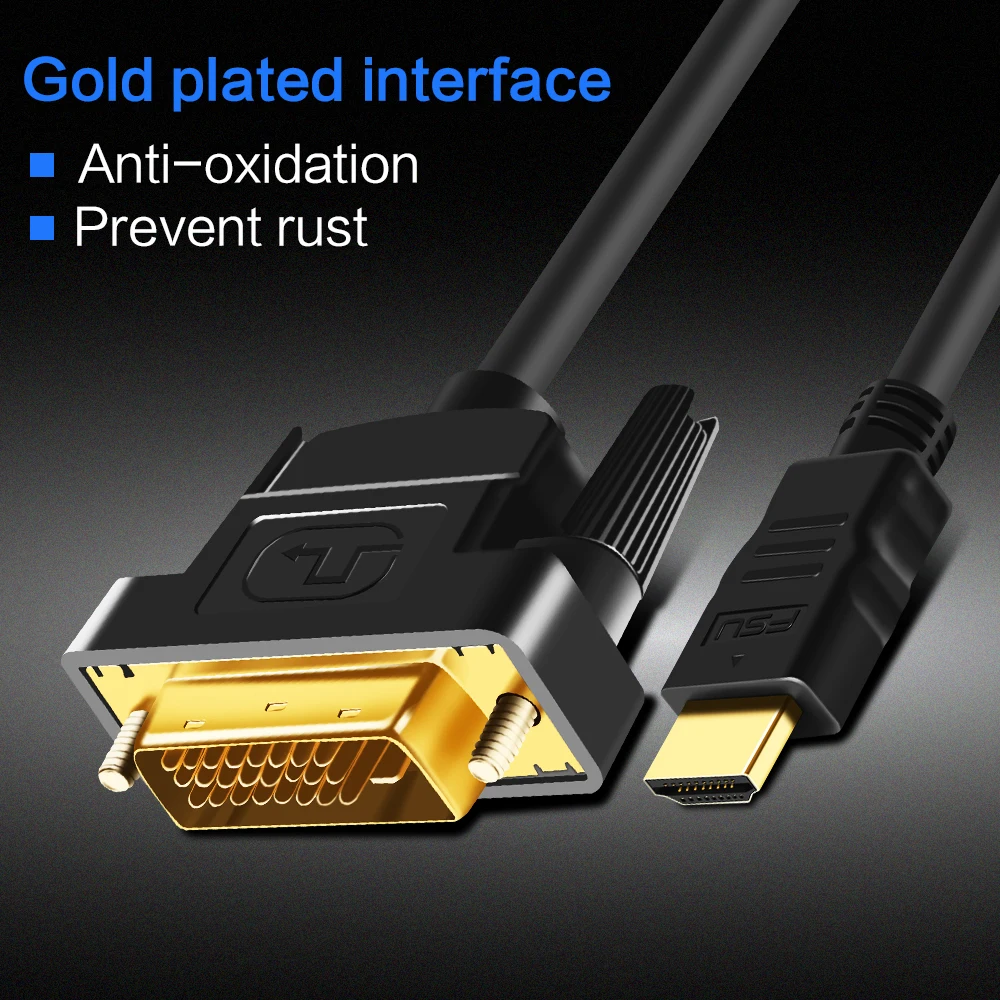 Nota: Para HD a DVI, asegúrese de tener la última tarjeta gráfica y los últimos controladores de audio instalados.Descripción:Marca del producto: FSUEste cable es un cable bidireccional.La compatibilidad con la señalización HD a DVI también se puede transferir de DVI a HDMI. Puede conectar un dispositivo de entrada con HD a un dispositivo de salida con DVI, o puede conectar un dispositivo de entrada con DVI a un dispositivo de salida compatible con HDMI.Característica:100% nuevo y de alta calidad.Longitud del cable: 1m,2M, 3mConector: un extremo es el macho compatible con HDMI, el otro extremo es DVI 24 + 1Soporte completo para formatos de señal digital 720,1080i y 1080PConector chapado en oro de 24K, 24 chapado en oro a anticorrosión, para garantizar una transmisión de señal estableMaterial aislante de espuma N2, mejora la velocidad de transmisión de señal, reduce la atenuación de transmisión de señal causada por el error para garantizar la estabilidad de la señal de alta frecuencia.Estructura de doble escudo, elimina completamente la diafonía generada cuando la transmisión de señal garantiza la estabilidad de la transmisión de señal a larga distanciaAlcance del producto:AV, reproductor de DVD, monitor, máquina de juegos, computadora, televisión digital, TV de plasma, proyector, cámara, cámara DV, caja superior de TV por cable, procesador AV.Paquete incluido:1x Cable compatible con HDMI a DVI