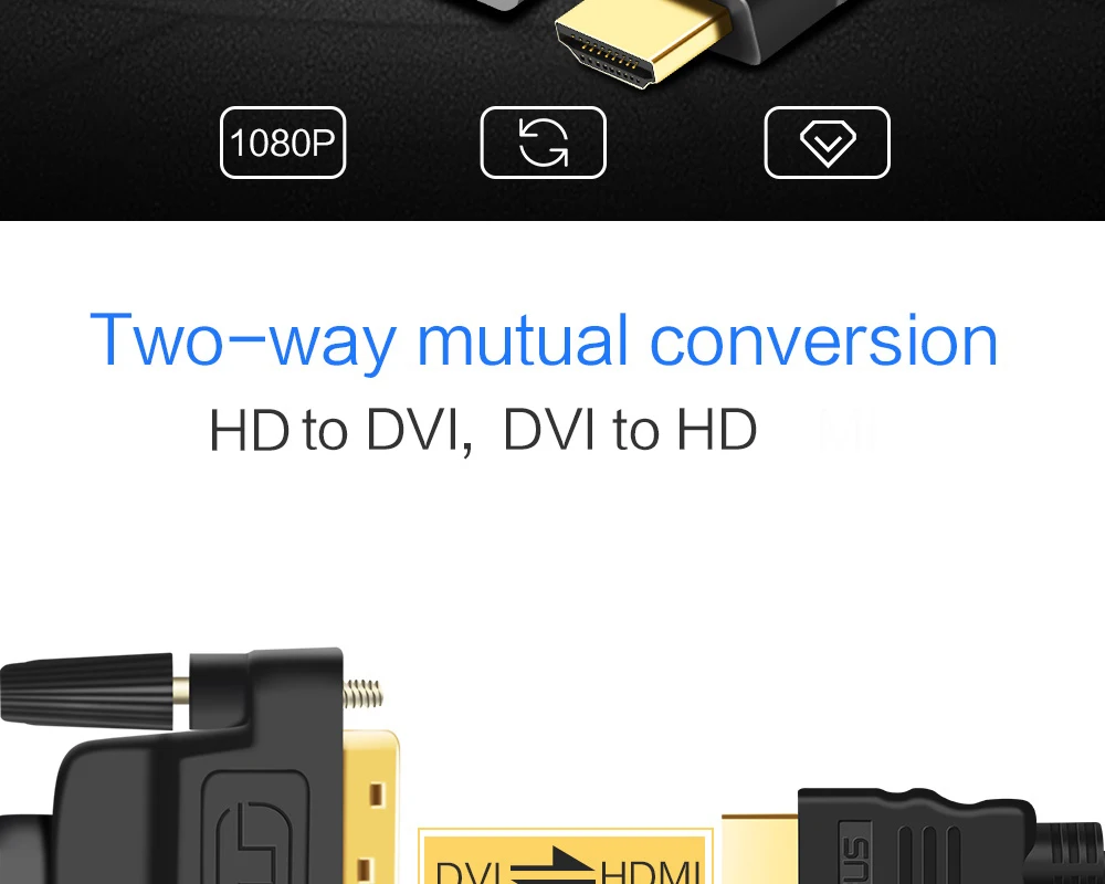 Comprar DUPILINK-Cable HDMI compatible con DVI, adaptador chapado en oro para HDTV, DVD, proyector, PS5, 4, 3, TVBOX