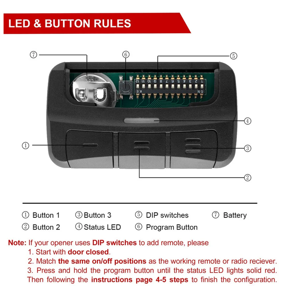 3. Si su mando a distancia tiene códigos variables, después de la clonación, el nuevo mando a distancia debe ser programado/activado en el receptor, y el nuevo mando a distancia funcionará.