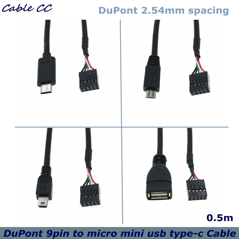 Comprar DuPont-Cable de refrigeración de CPU para CORSAIR Hydro Series H80i/H100i/H110i/H115i, 2,54mm, 9 pines a Mini USB y Micro usb tipo c, interfaz USB